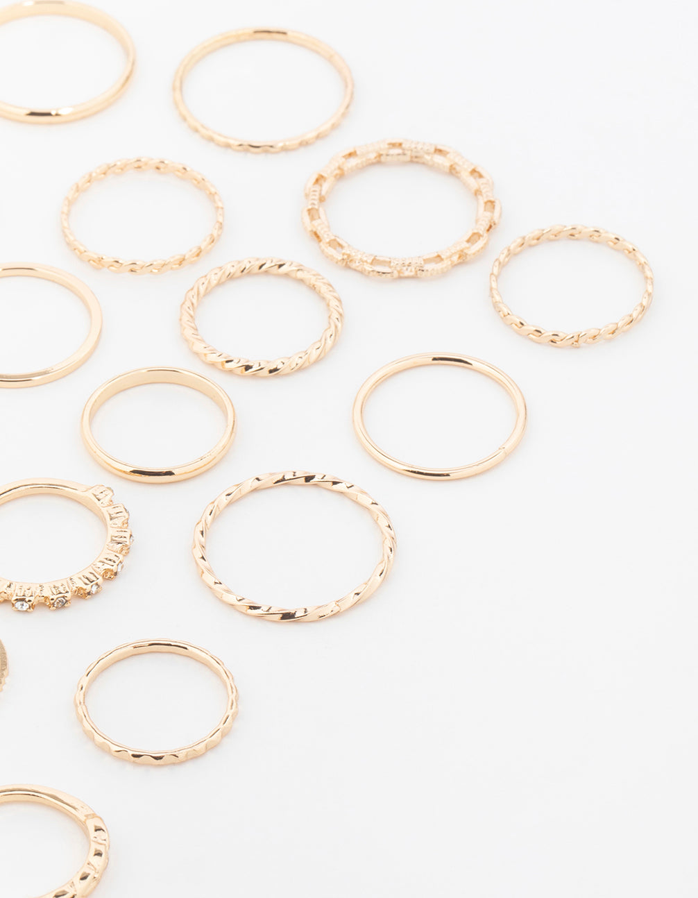 • Gold Mixed Twisted Diamante Rings 22-Pack - link has visual effect only