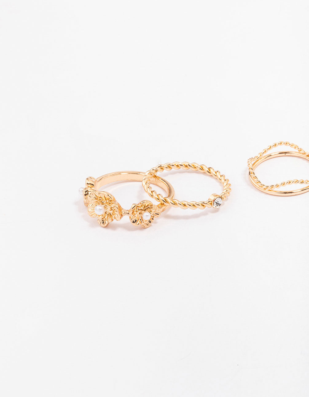 Add a touch of elegance to your jewellery collection with this Gold Twisted Flower Stacking Rings Pack. Featuring a mix of beautifully crafted gold-tone rings with twisted designs and delicate floral shapes, this set is perfect for mixing, matching, and stacking. Ideal for dressing up your everyday outfits or adding flair to a party look, these rings are versatile and effortlessly chic. Pair them with casual denim and a cute top for a laid-back vibe, or style them with a flowy dress for a more polished finish. Whether you're heading out with friends or just want to elevate your everyday accessories game, these stacking rings are your go-to for a playful yet sophisticated look!