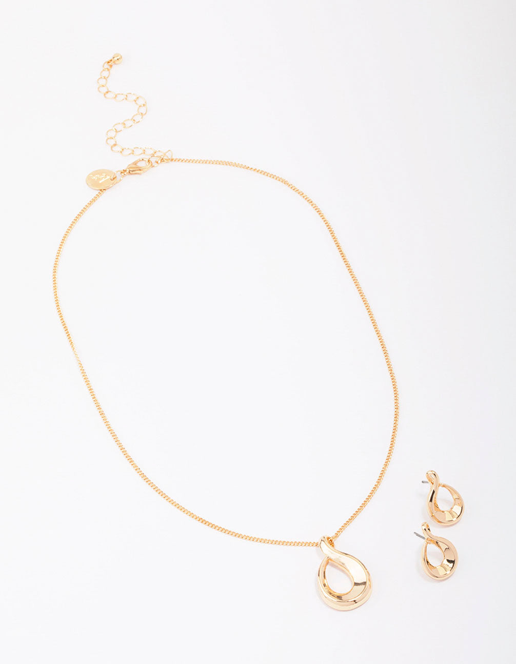 Gold Twisted Ova Necklace & Earring Jewellery Set
