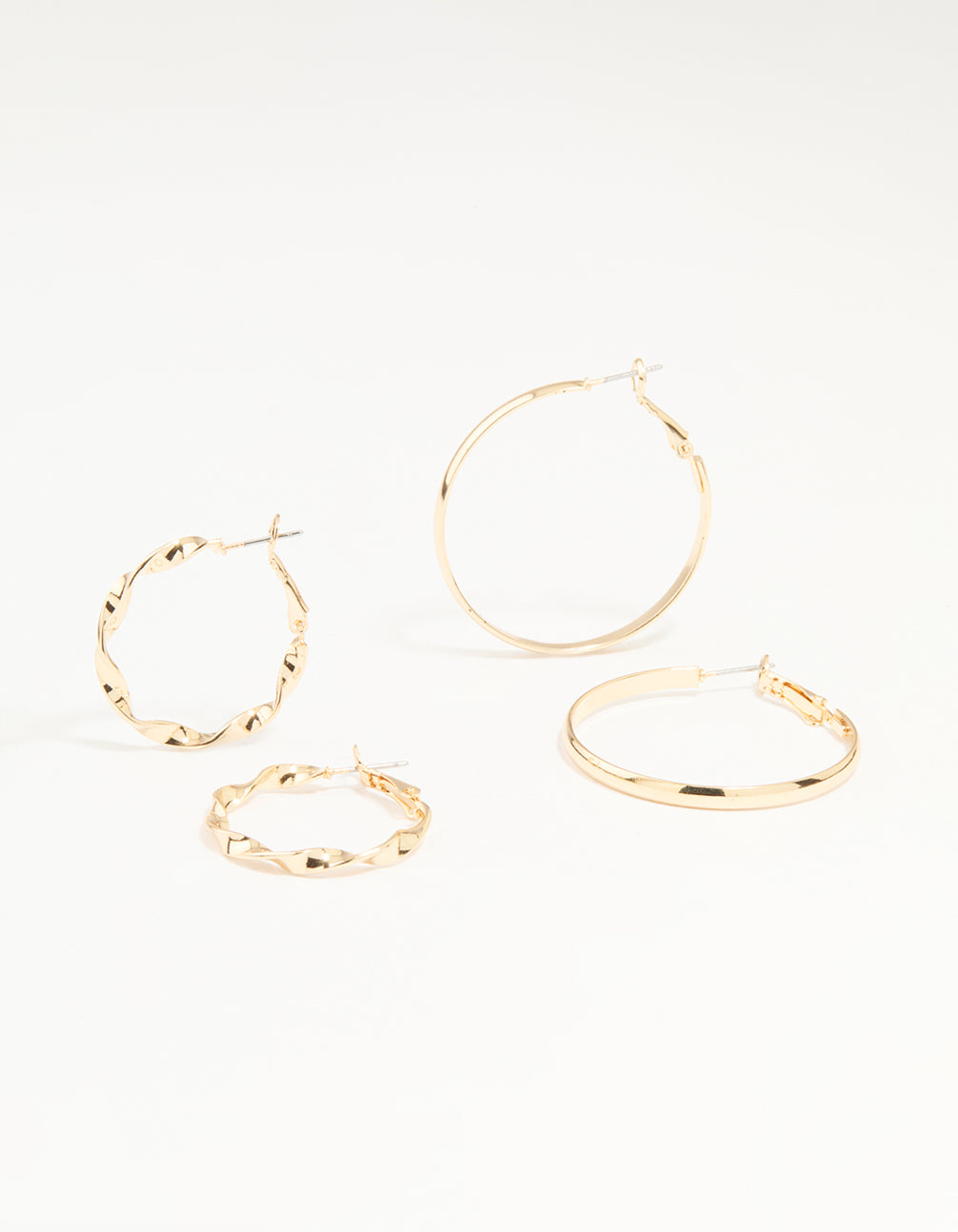 Gold Twisted & Plain Hoop Earrings 2-Pack
