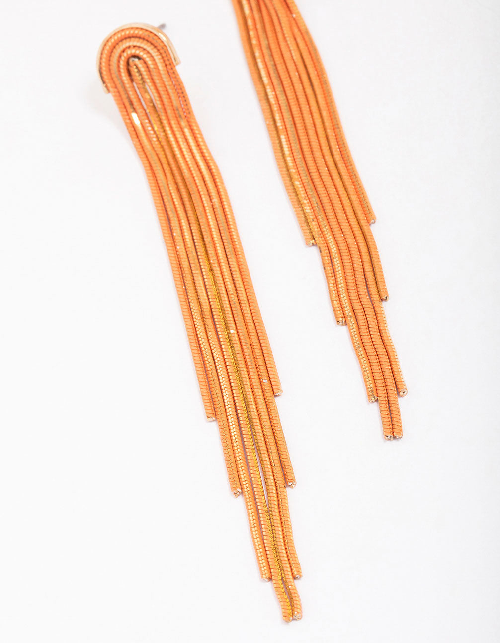 For a vibrant finish to your look, style these bright orange statement earrings. These gorgeous drop earrings feature a waterfall-inspired, cup chain design.