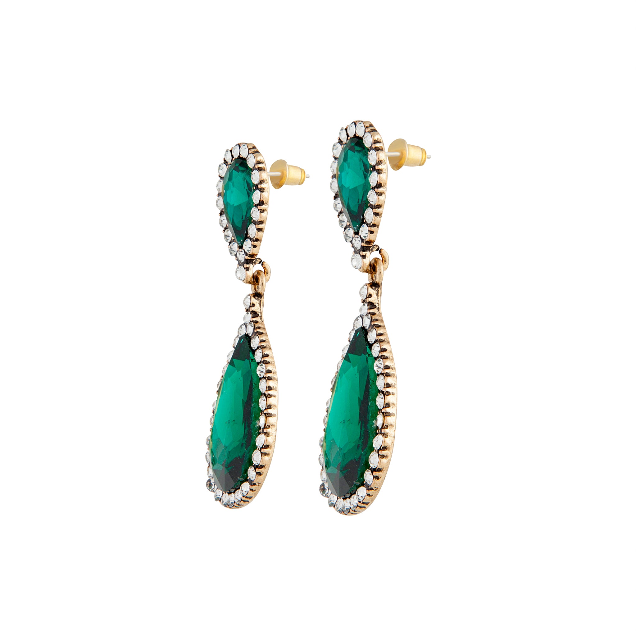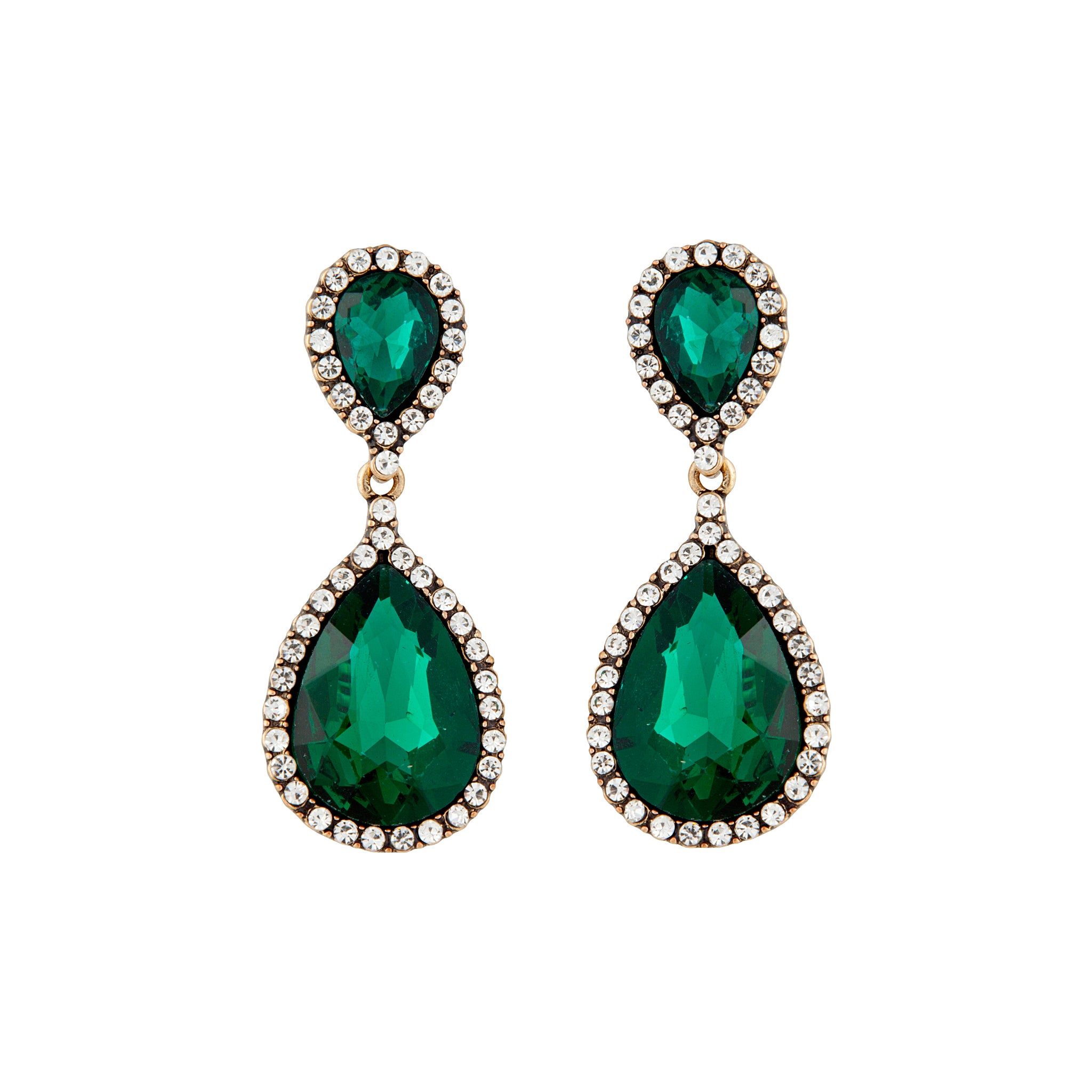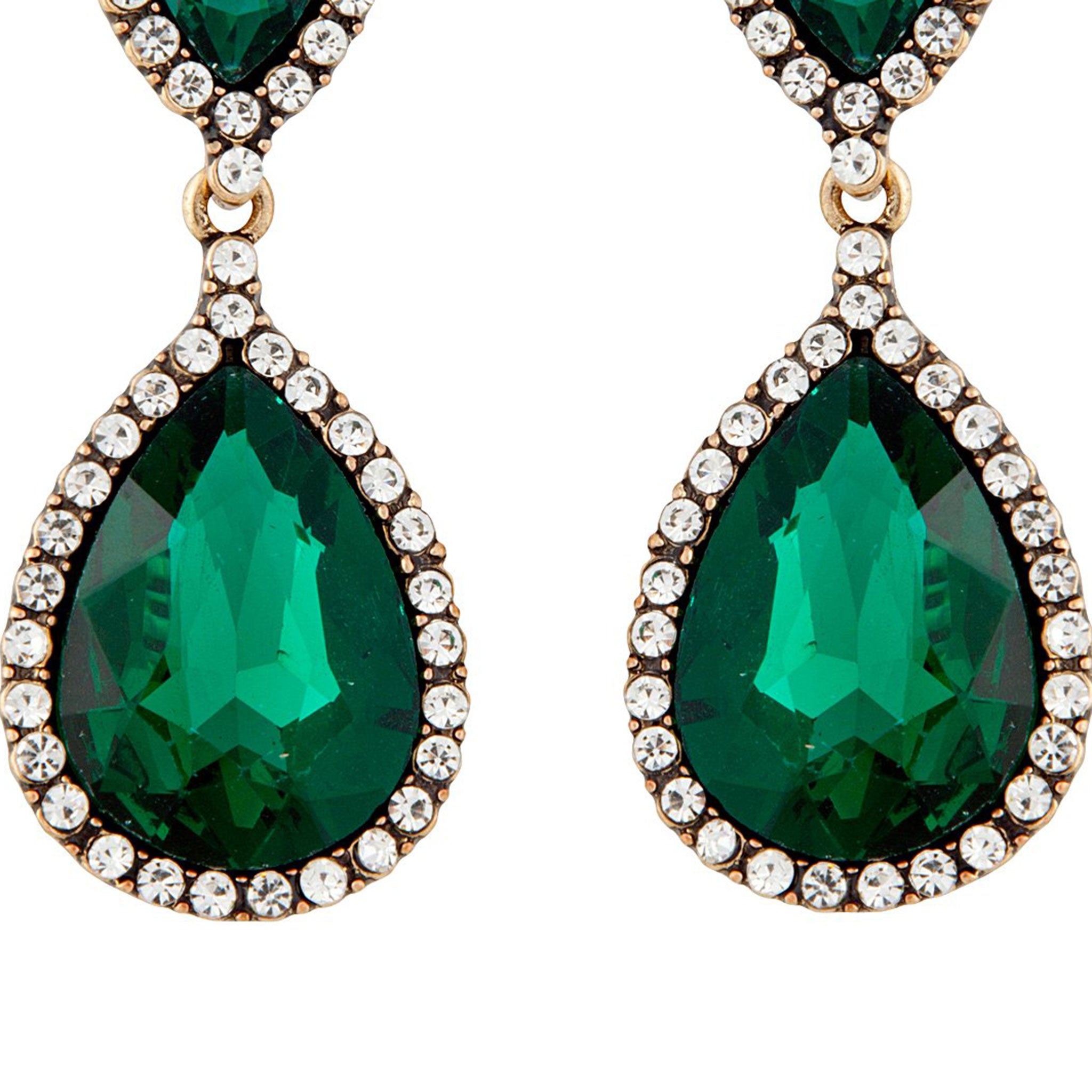 In an Angelina inspired design, these stunning crystal earrings pose a rich emerald colour with a border of crystal diamantes.