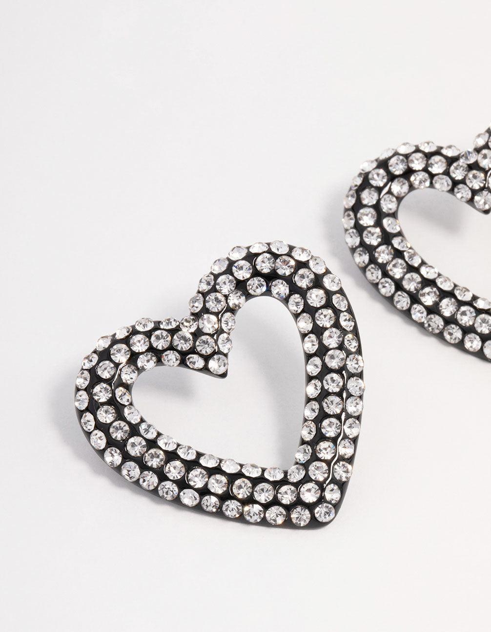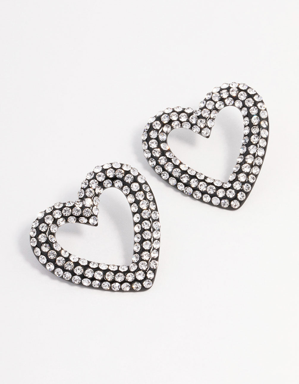 For a lovable addition to your stack, style these lovely gunmetal earrings. These unique stud earrings feature a heart-shaped outline, encrusted with mini diamantes for a glamorous finish.