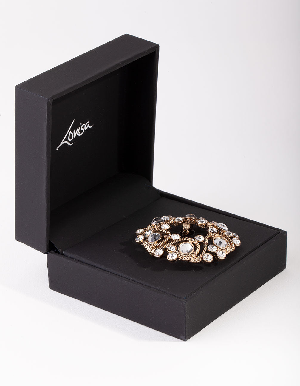 Dazzle and shine with eye-catching pieces featuring sparkling elements. This gorgeous gold-toned broach boasts an ornate circular design thatÕs studded with diamantes for maximum brilliance. It has a vintage-style antique finish. This piece comes with an elegant black Lovisa box. Gift it to someone special or treat yourself!