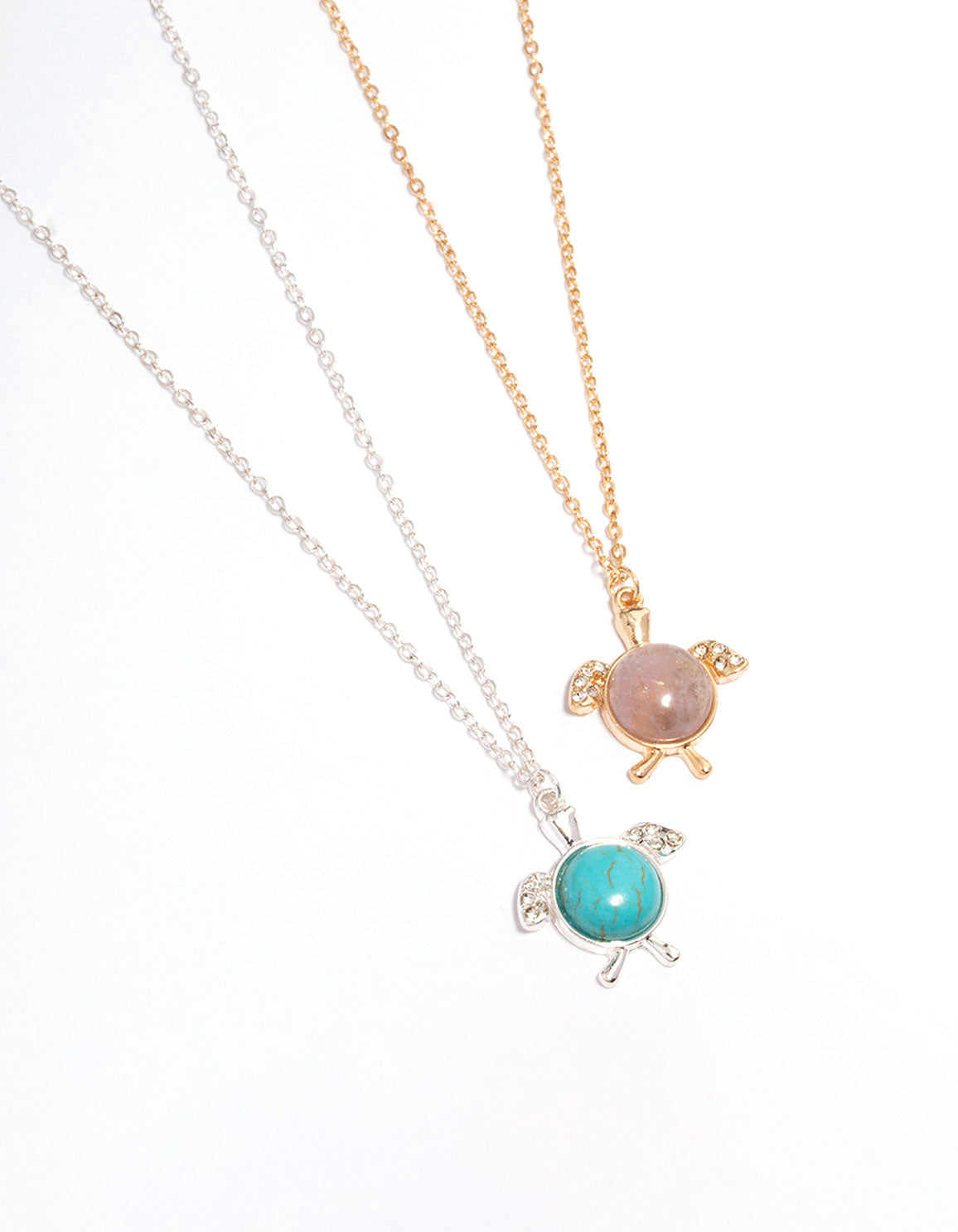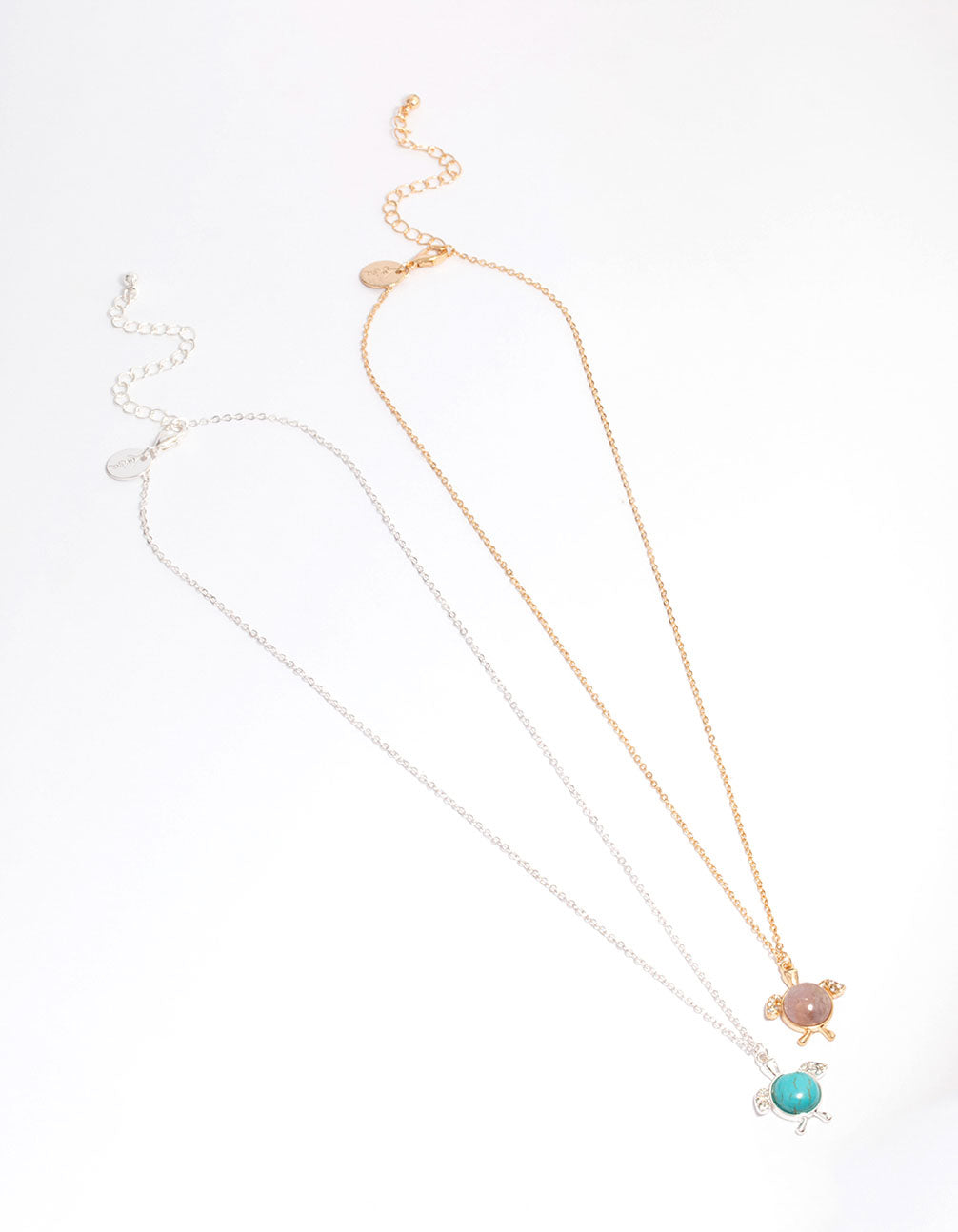 Mixed Metal Semi-Precious Turtle Necklace Pack