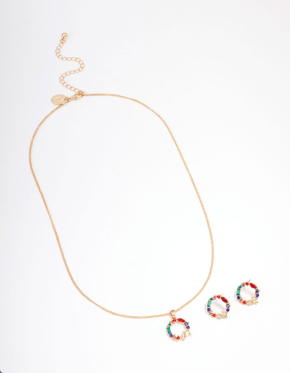 - This gift box contains a set of round rainbow stud earrings and a matching pendant necklace for an eye-catching look.