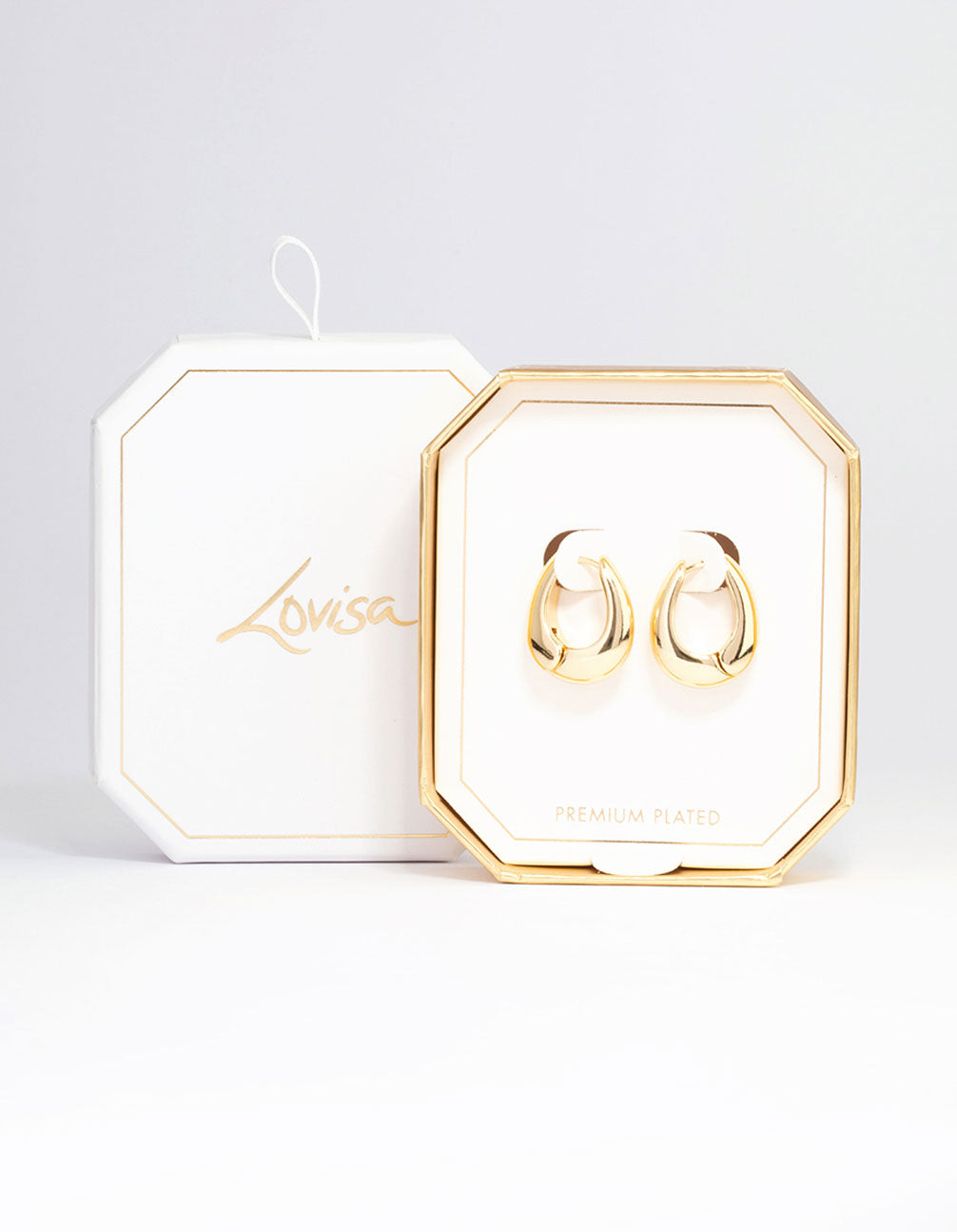 This gift box contains a set of bold, oval-shaped gold plated hoop earrings, perfect for everyday wear.