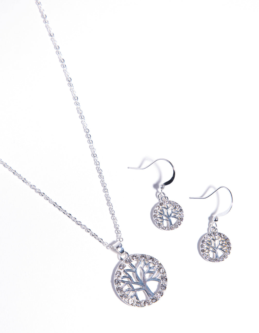 Get the perfect gift for someone special, or treat yourself with this lovely silver-toned necklace and earring set which features the tree of life motif.