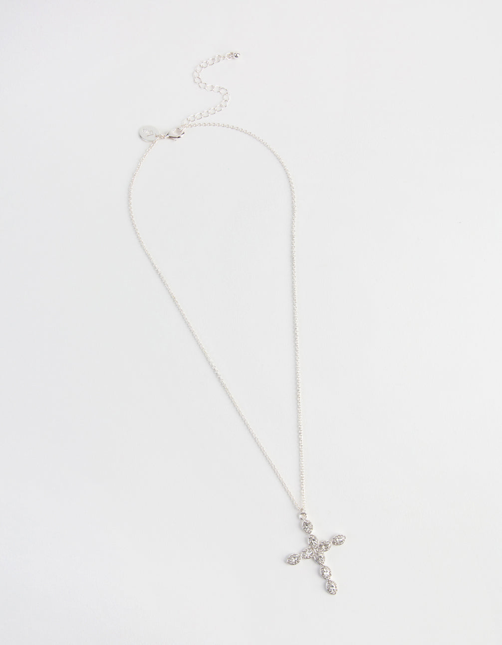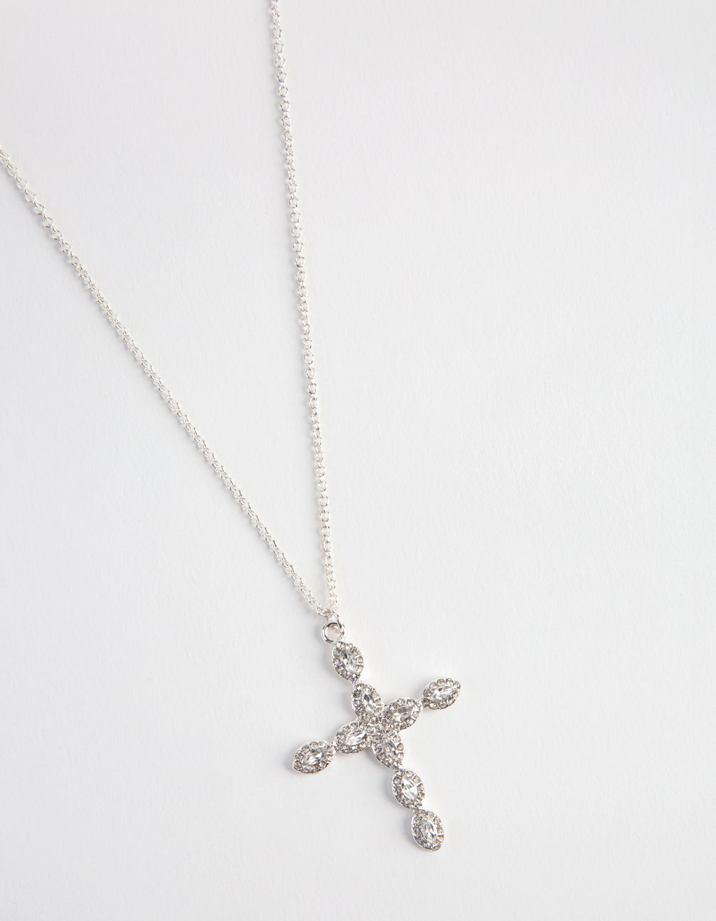Silver Teardrop Diamante Cross Necklace