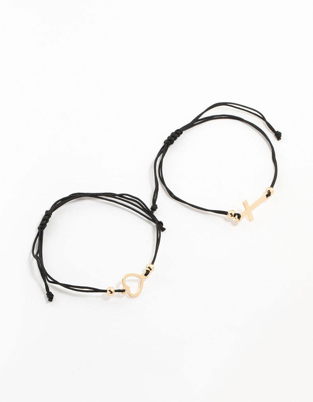 Heart & Cross Fabric Rope Bracelets 2-Pack