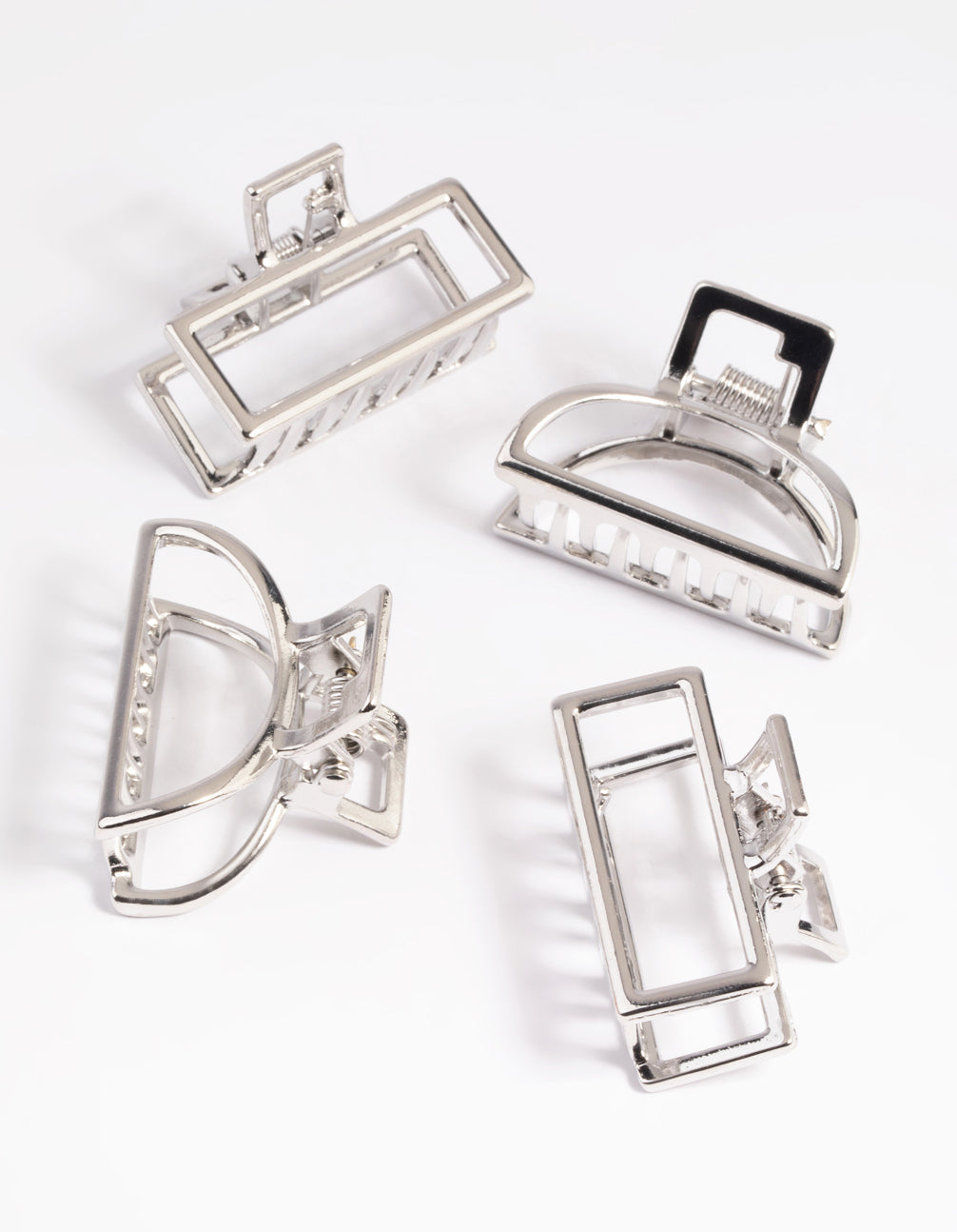 Silver Mixed Shape Small Hair Claw Clip 4-Pack