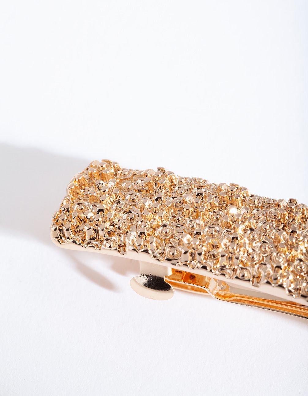 Playful and glamorous! Our hair accessories can dress up any outfit. This hair clip boasts a gold-toned setting with a textured finish.