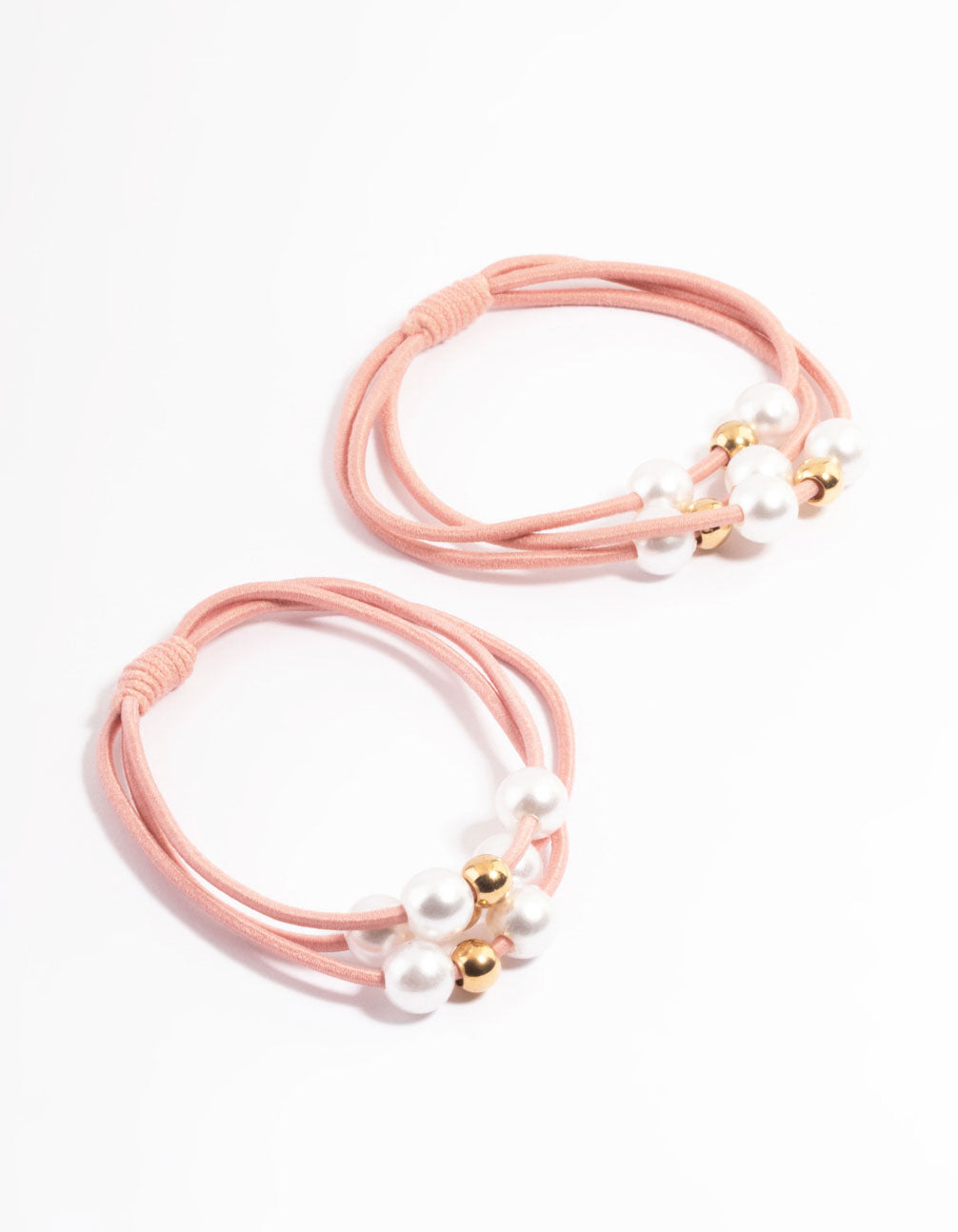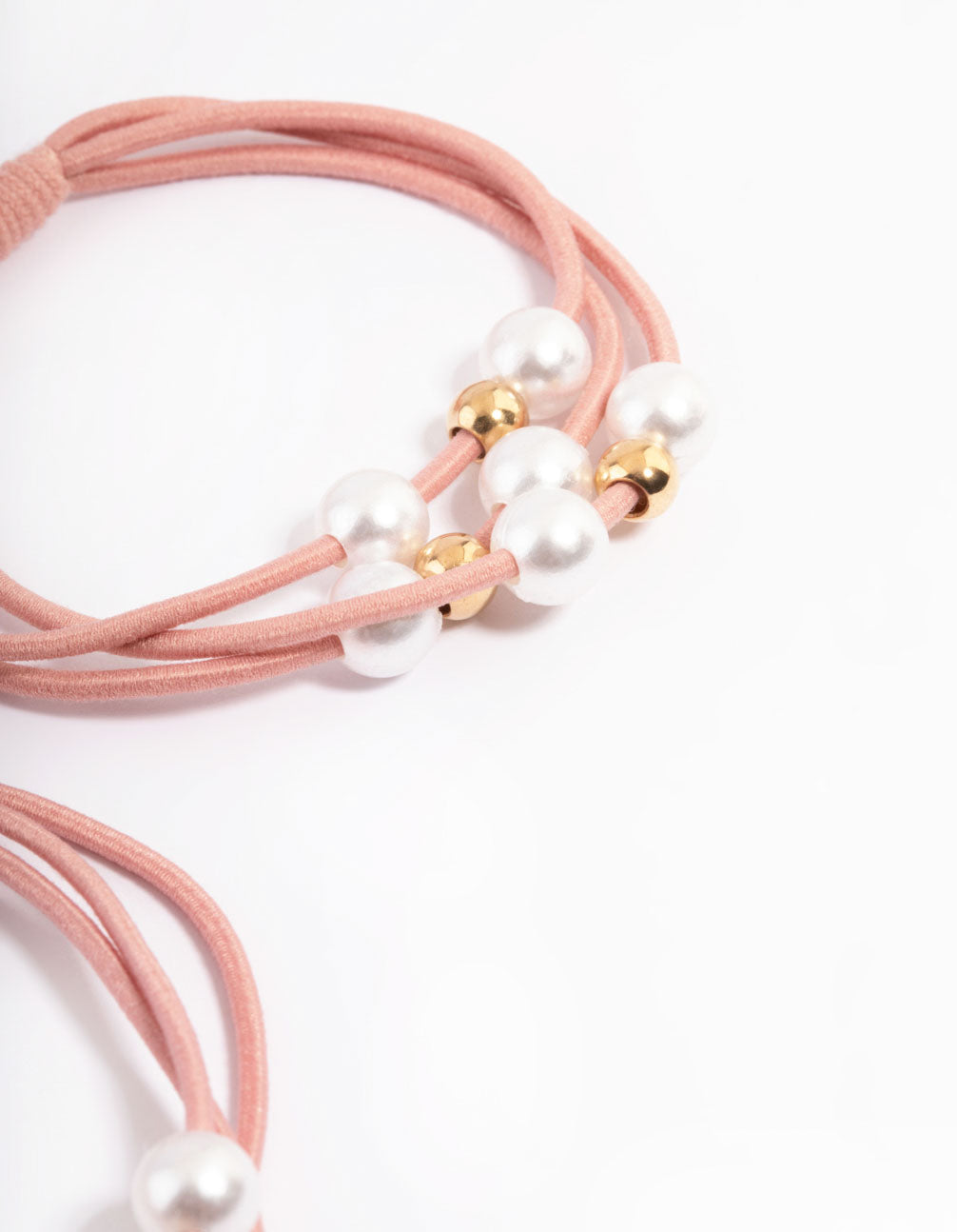 Pink Fabric Pearl & Bead Hair Tie Pack