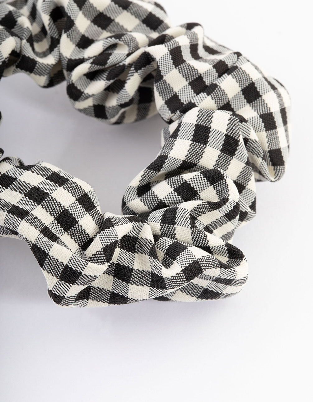 - Style our gingham-style, black checkered scrunchie with some adorning black accessories to match.