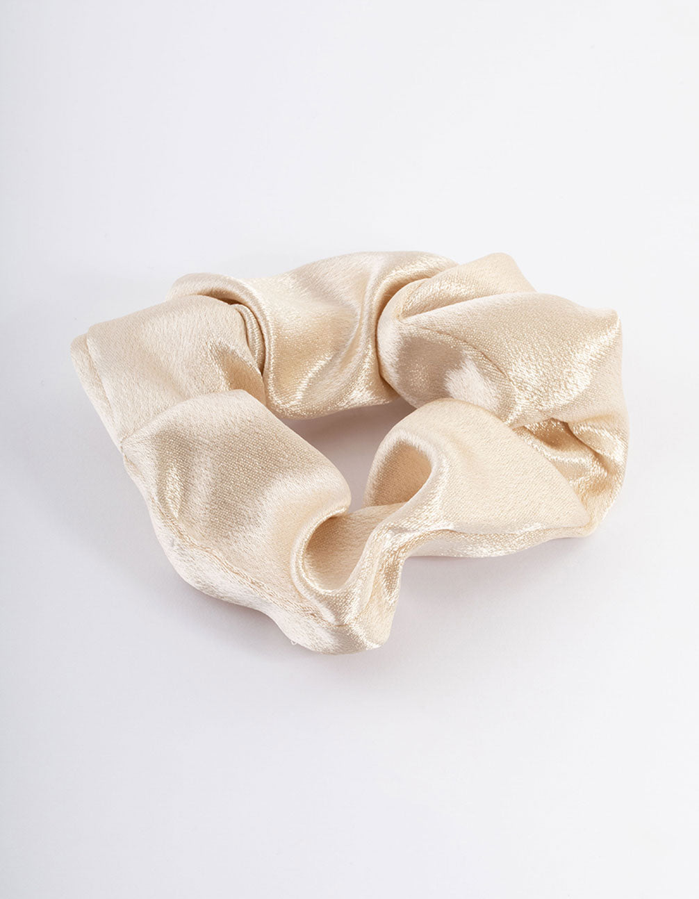 - Our cream-coloured fabric srcunchie is designed for a silky smooth feel in the hair to minimise frizz.