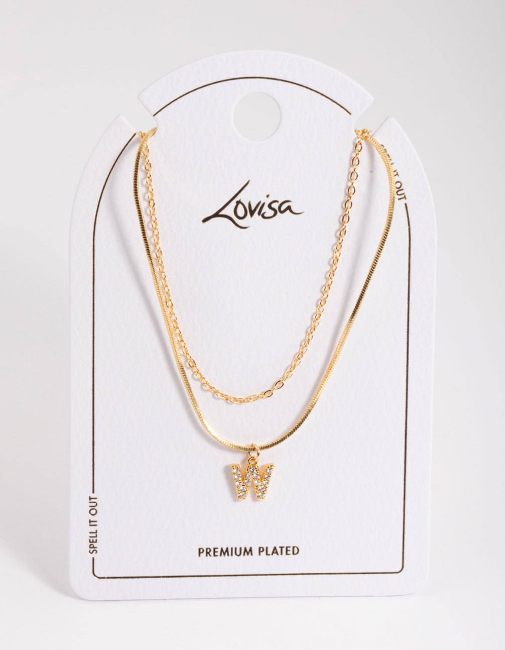 Gold Plated Diamante Letter W Layered Necklace