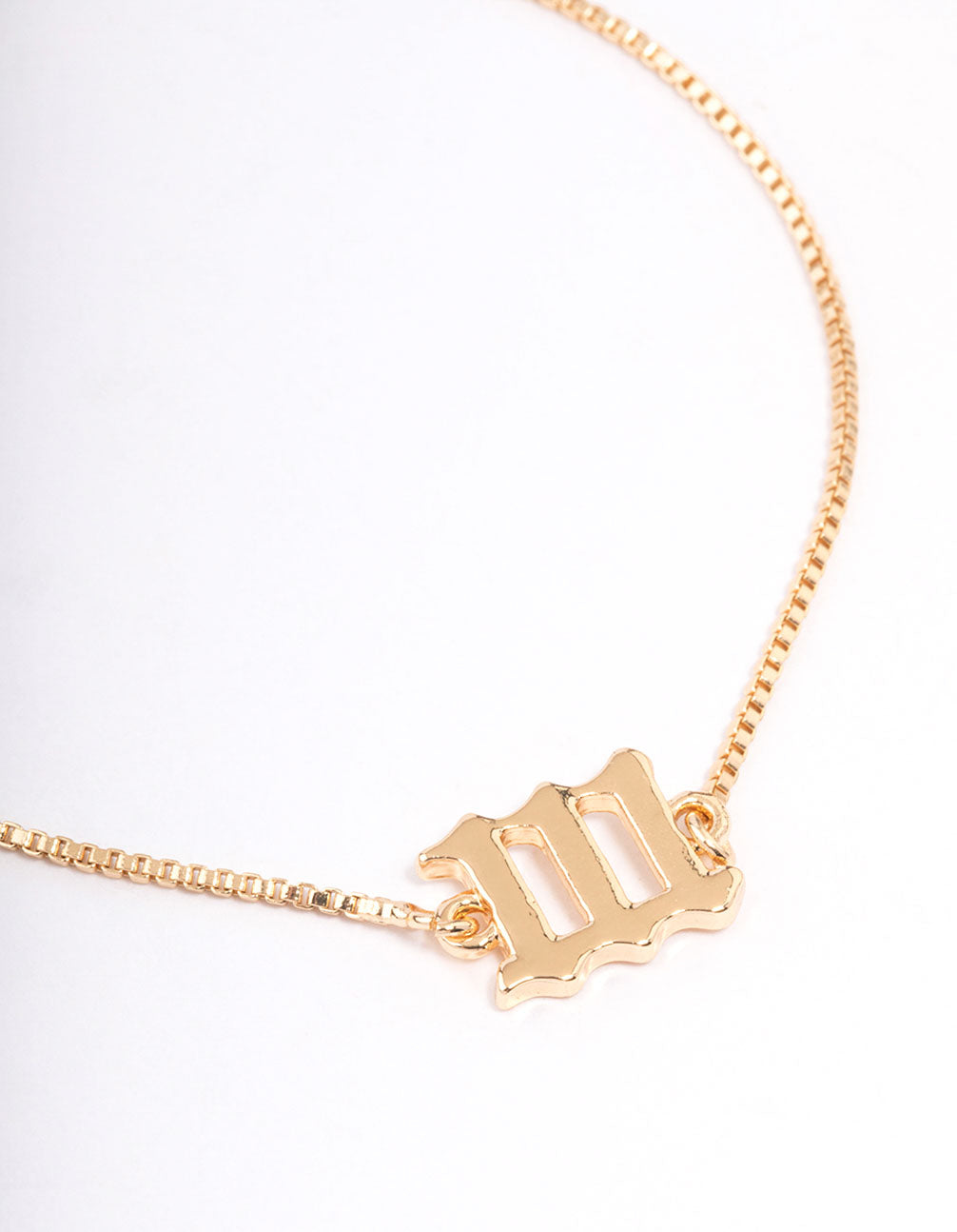 - This signature bracelet is plated with real gold and features a dainty '111' angel number charm. Repetitions of 1 are a symbol of intuition! Wear this bracelet each and every day to channel good energy and heightened intuition into your life!