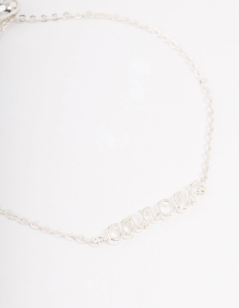 - This Cancer chain bracelet features the word 'Cancer' in script, perfect for adding a personalised touch to your wrist stack.