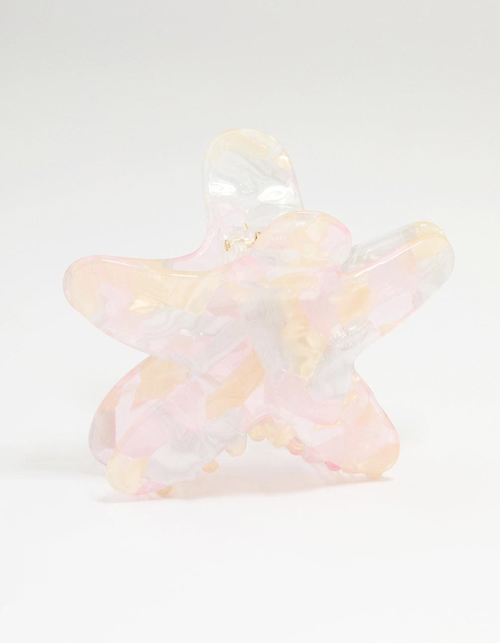 Add a splash of seaside charm to your hairstyle with this Iridescent Acrylic Medium Starfish Claw Clip. This claw clip is designed in a delightful starfish shape with a shimmering iridescent finish, making it a standout piece for any look. Perfect for securing your hair in a stylish updo or keeping loose strands in place, this claw clip is both practical and eye-catching. Whether you're heading to brunch, a day at the beach, or a casual day out, this clip adds a playful yet chic vibe to your outfit. Pair it with flowy dresses, beachwear, or even a laid-back jeans-and-tee combo for a touch of effortless style.