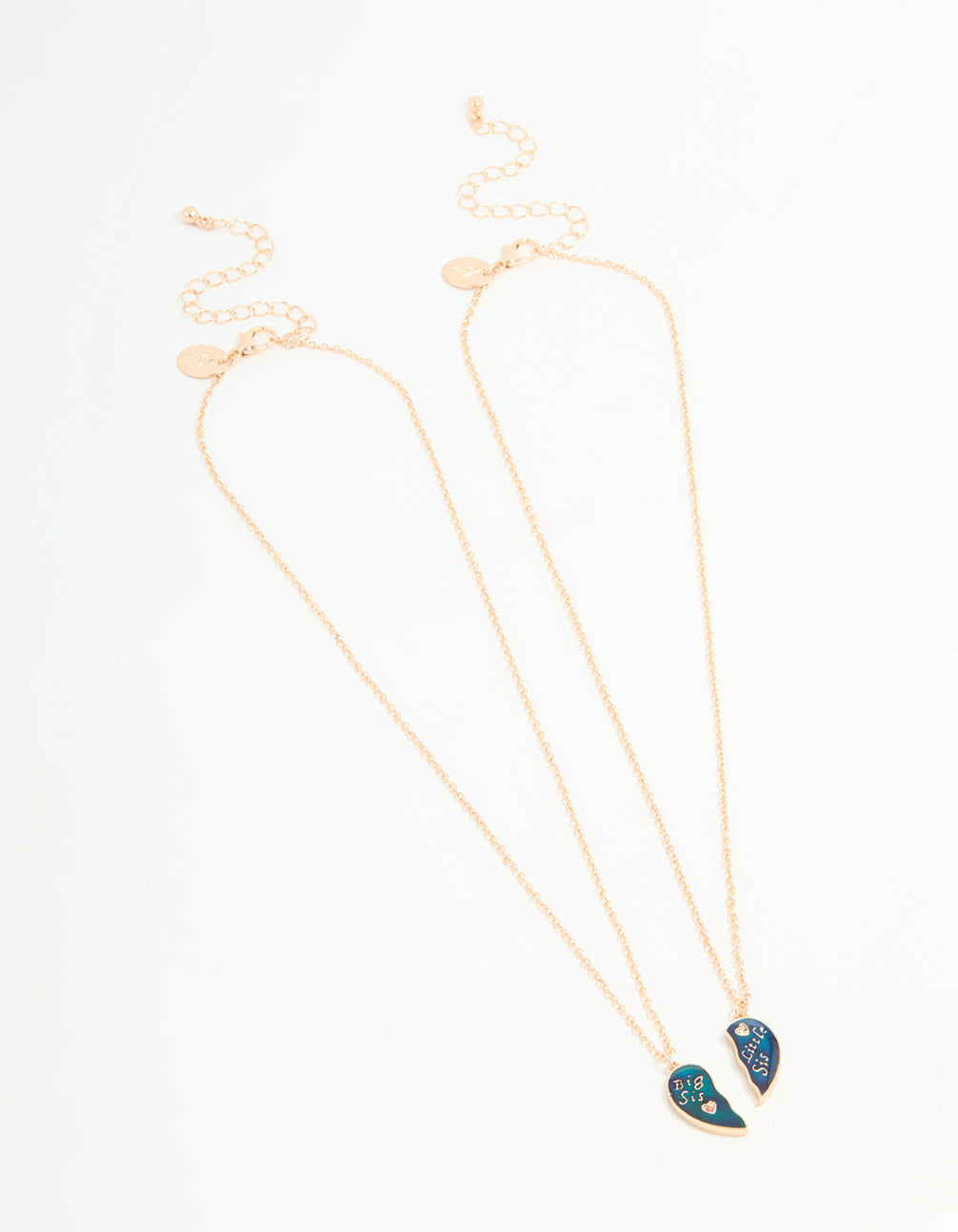 Kids Gold Big & Lil Sis Mood Pendant Necklace Set Kids Gold Big & Lil Sis Mood Pendant Necklace Set Kids Gold Big & Lil Sis Mood Pendant Necklace Set