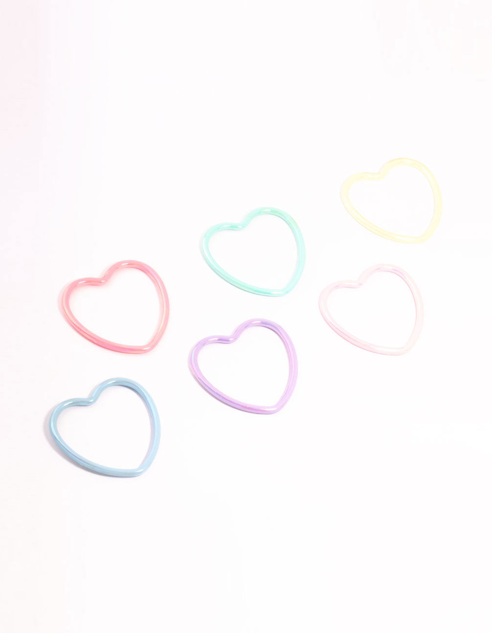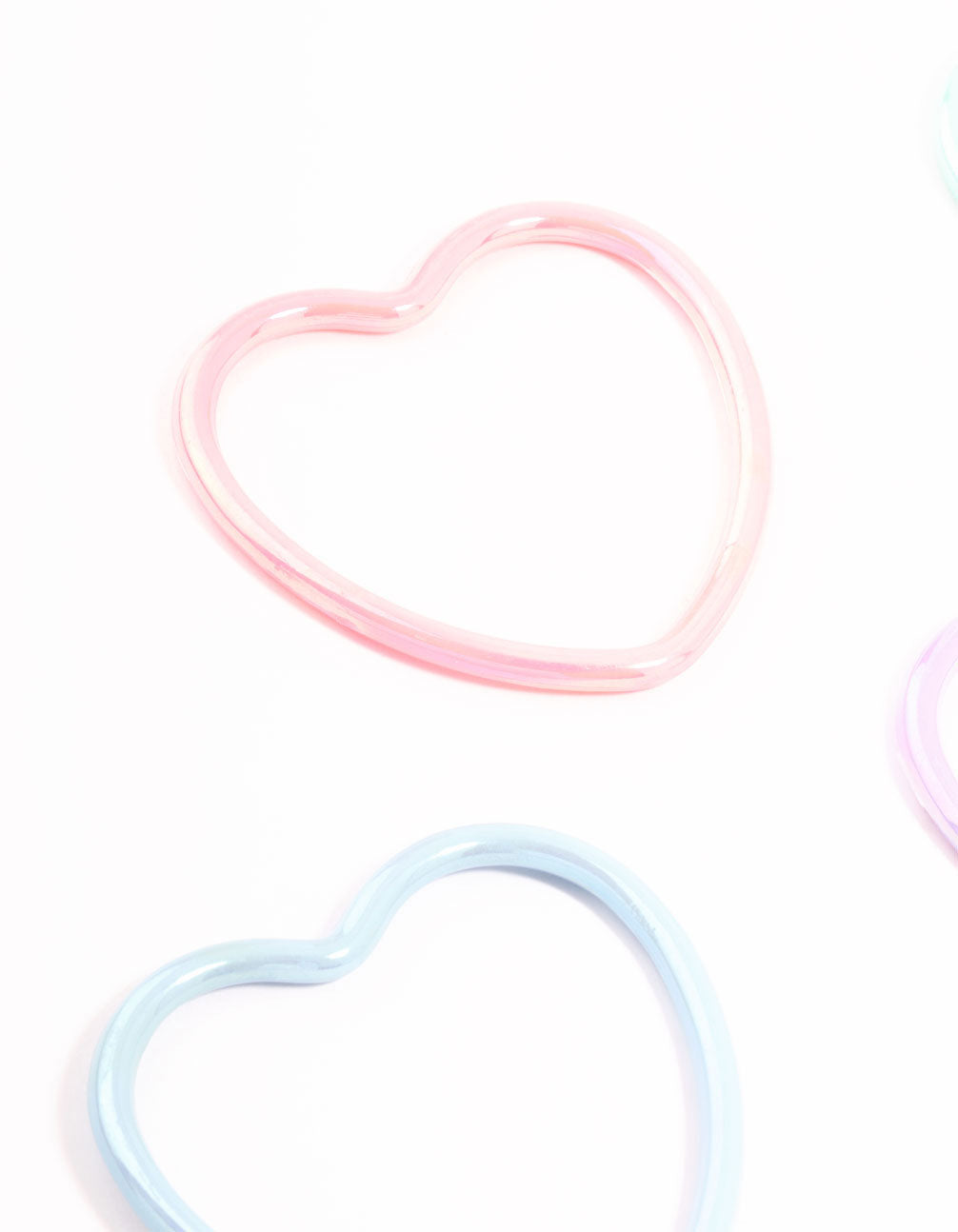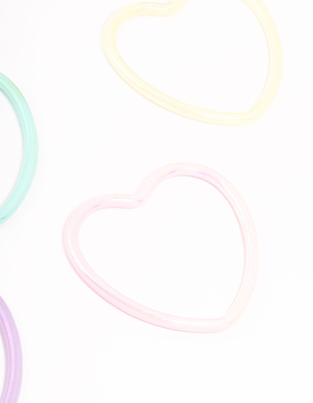 Brighten their day with these colourful kids pastel heart bangles! This 6-pack features shades from bubblegum pink to aqua, perfect for keeping your little one cheerful. Let them mix, match, or stack them for a fun and trendy look.