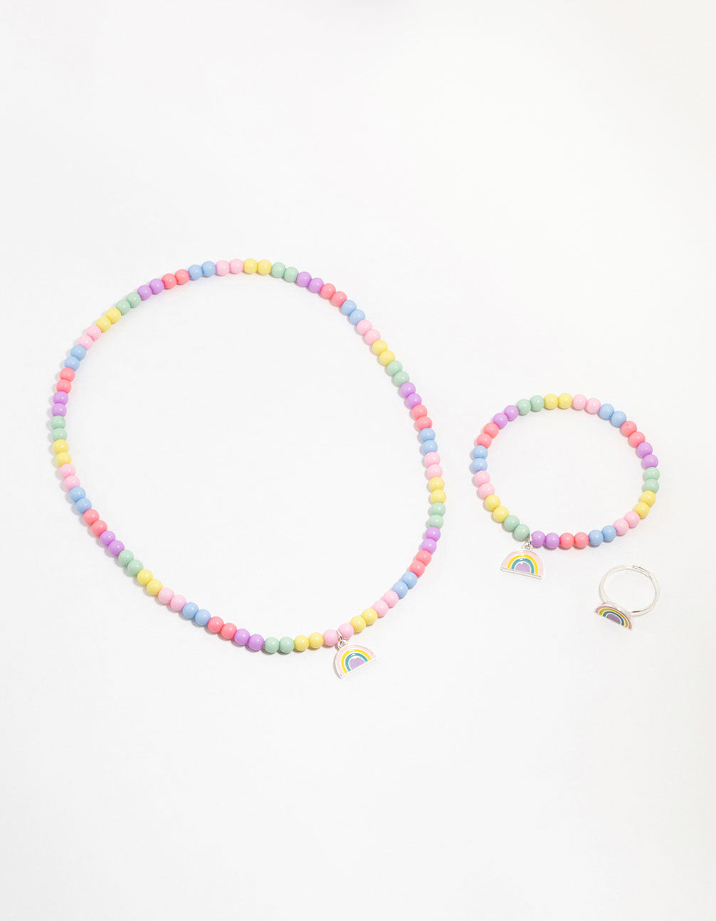 Kids Rainbow Bead Ring, Neck & Bracelet Pack
