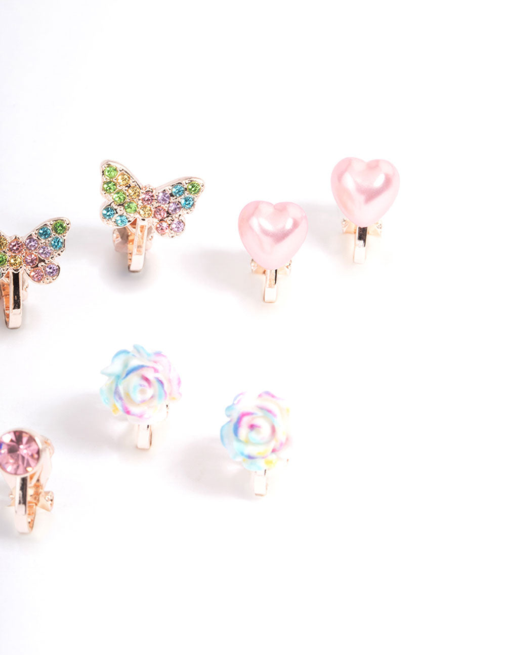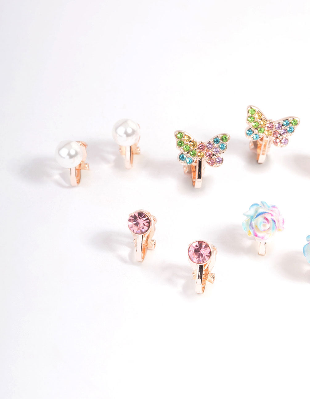 - This multi-pack contains five individual ombre, rose motif clip on earrings.