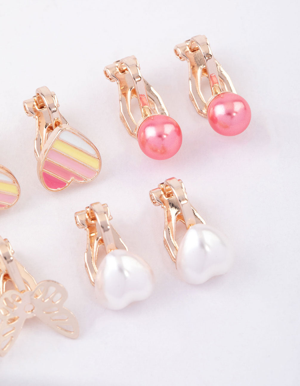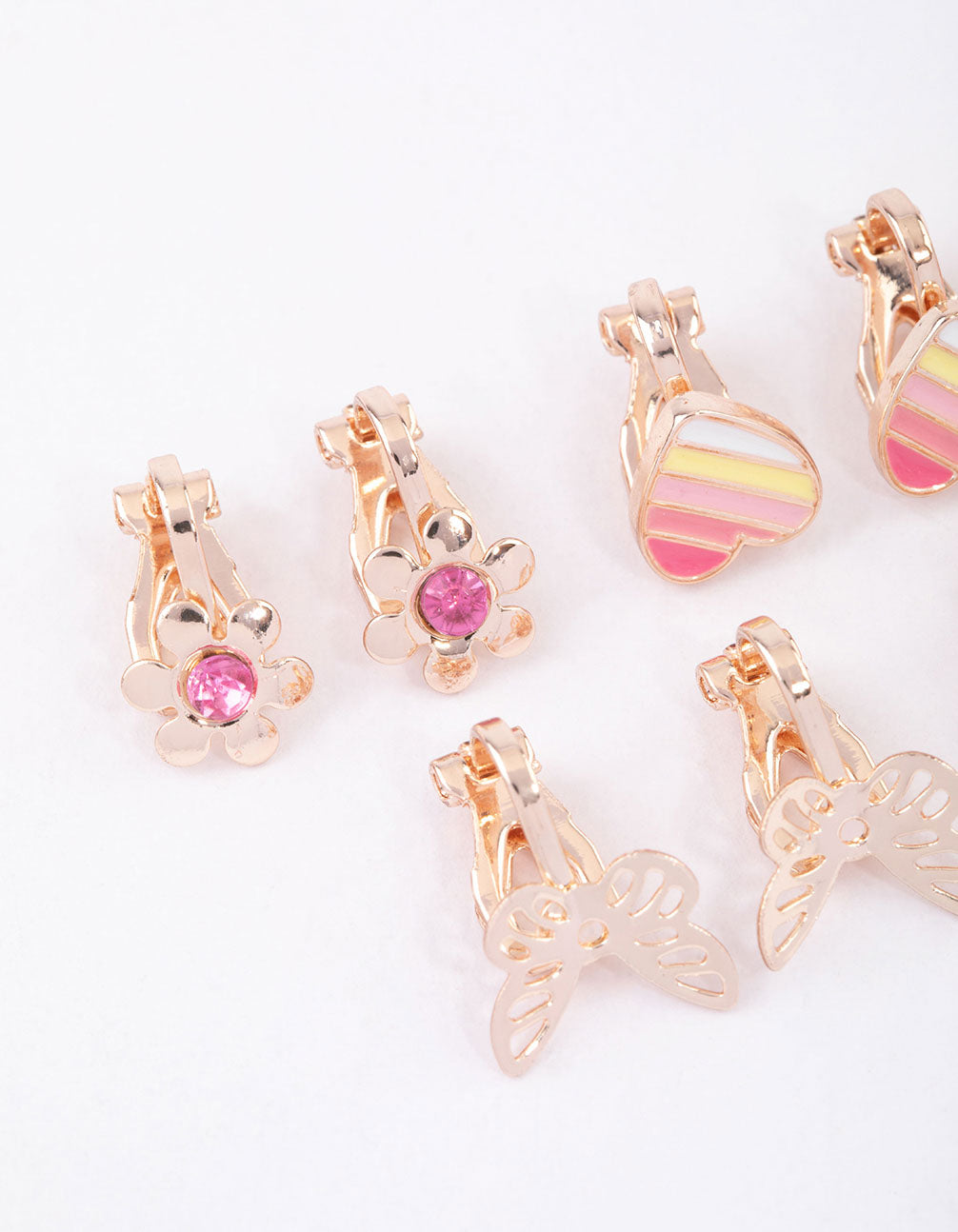 Kids Pink Butterfly & Heart Clip On Earrings 6-Pack Kids Pink Butterfly & Heart Clip On Earrings 6-Pack Kids Pink Butterfly & Heart Clip On Earrings 6-Pack