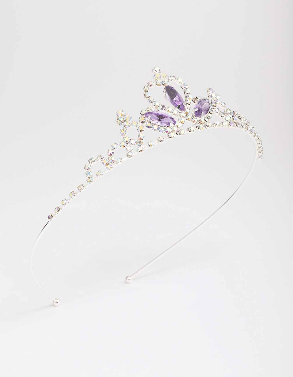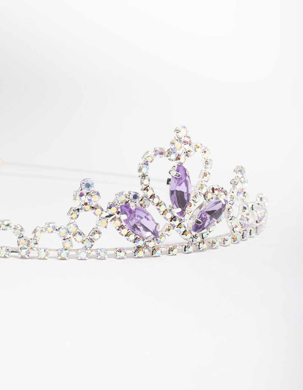 This tiara features a trio of lilac-coloured stones at the front for a pop of colour. Perfect for parties or playing dress up!