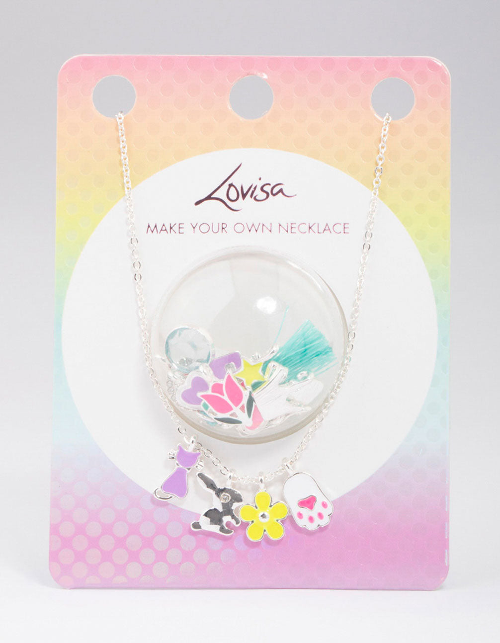 Create your own necklace with this cute, Easter-themed jewellery kit! This DIY necklace set contains a silver chain necklace and collection of colourful charms.