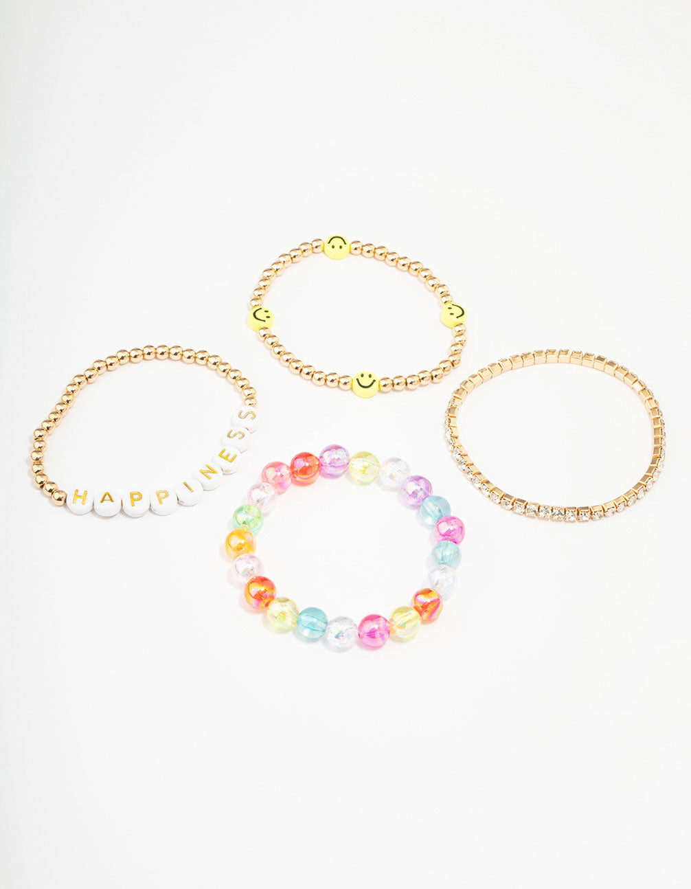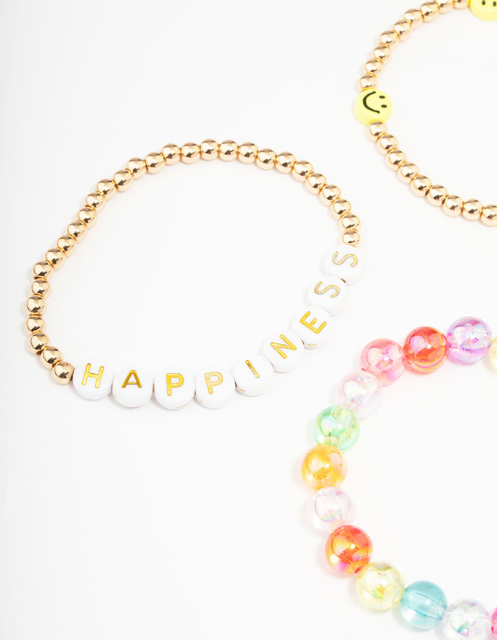 Kids Smiley Rainbow Stretchy Friendship Bracelet Pack