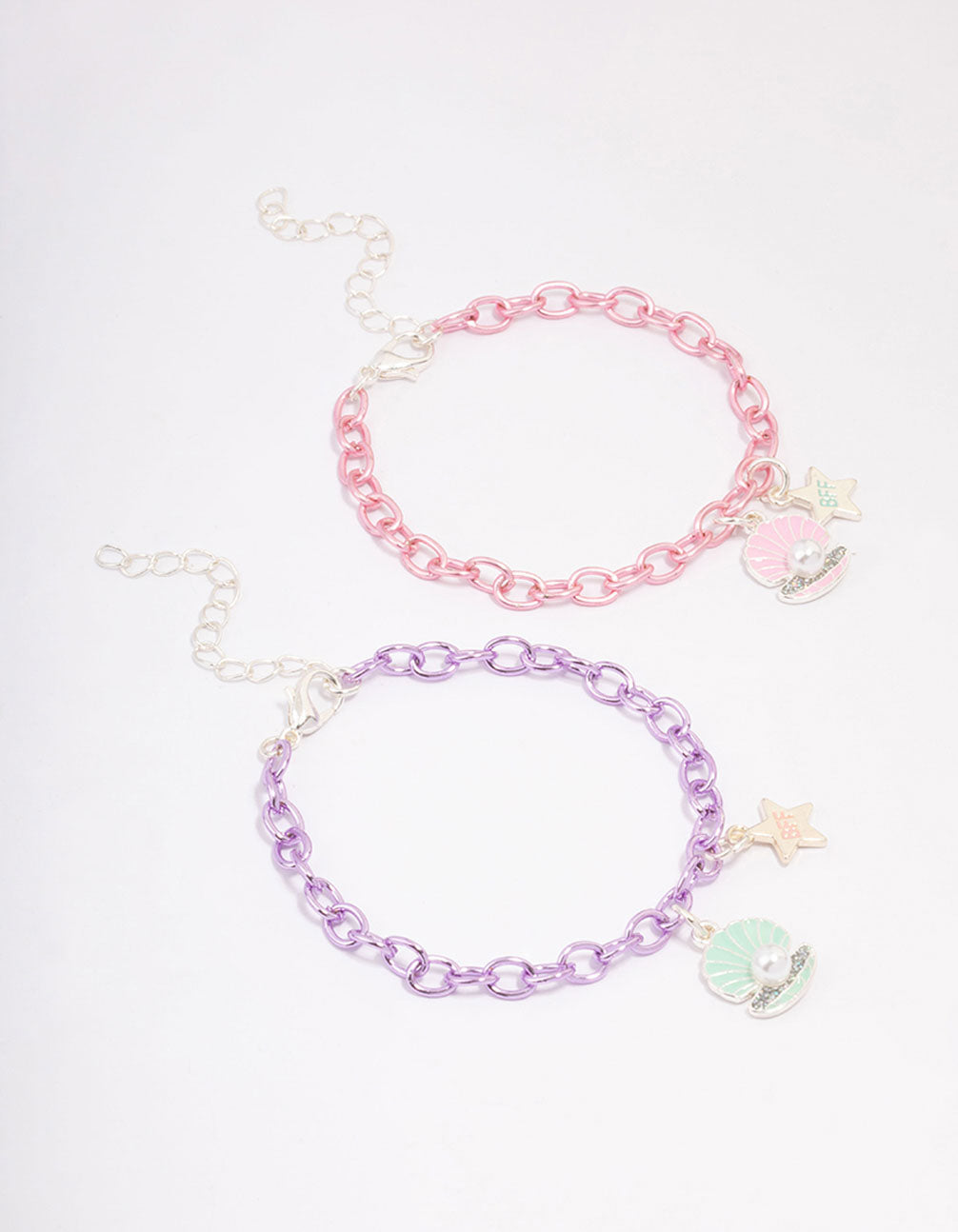 • This kids bracelet pack contains two individual bracelets adorned with adorable seashell charms for a coastal inspired look.