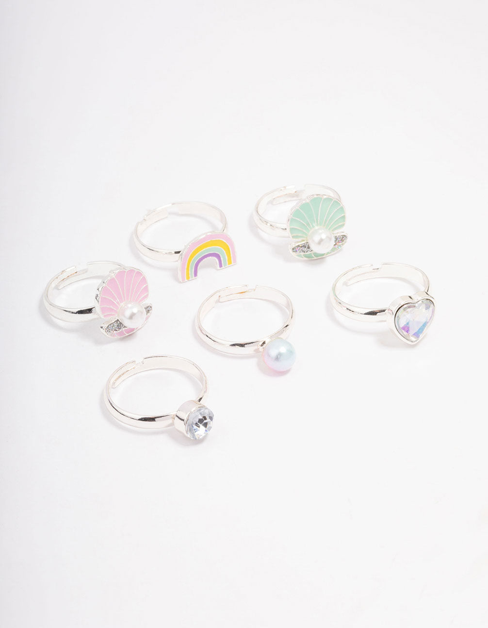 - Delight the little ones with this pack of six, silver seashell rings for a costal-inspired stack.