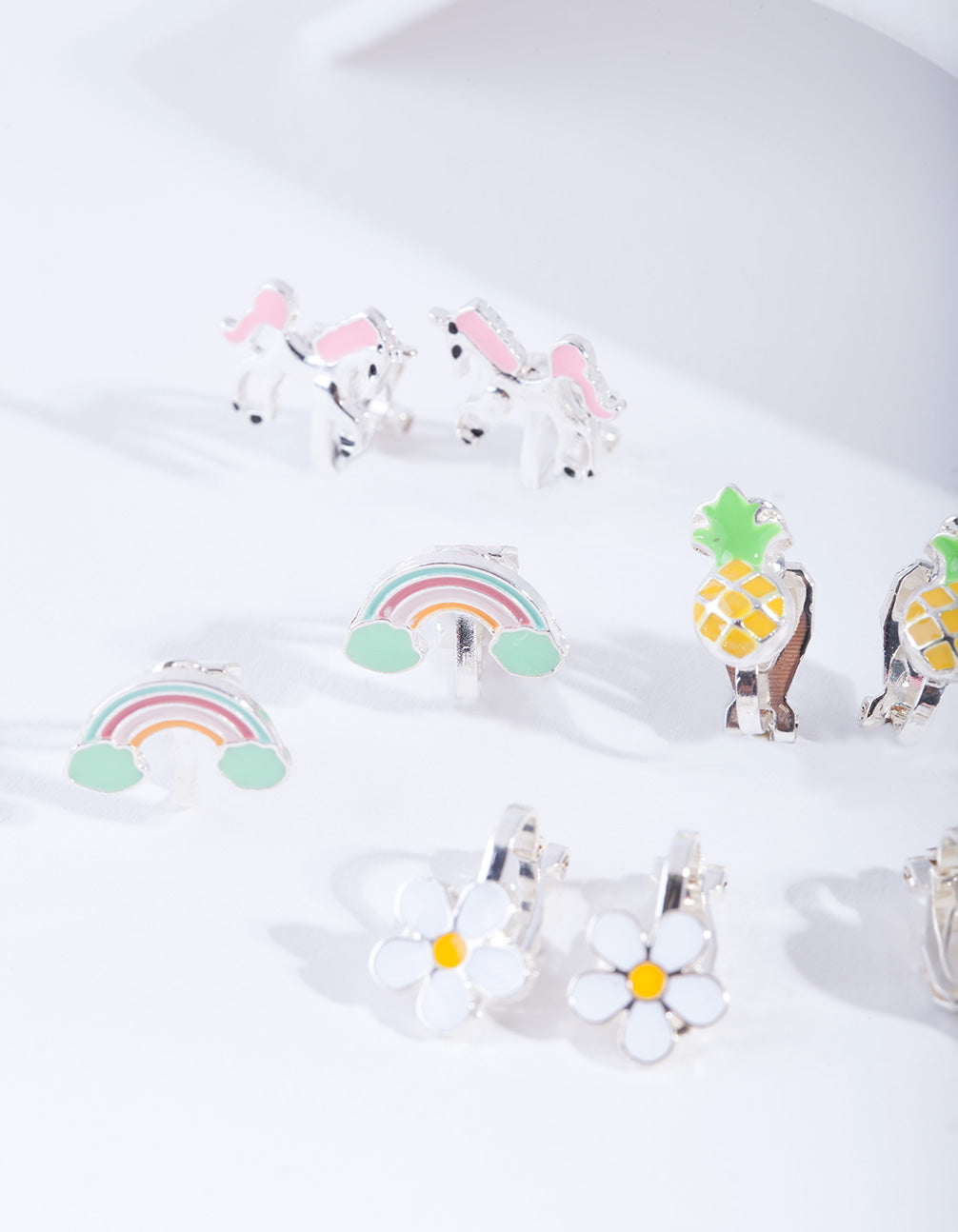 Kids Silver Unicorn Clip On Earring 5-Pack