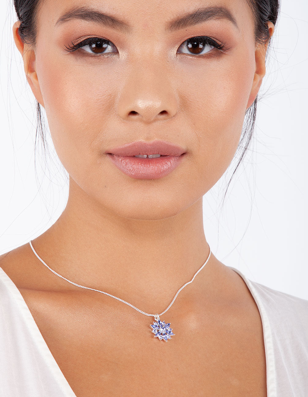 Lavender Faceted Crystal Flower Pendant Necklace
