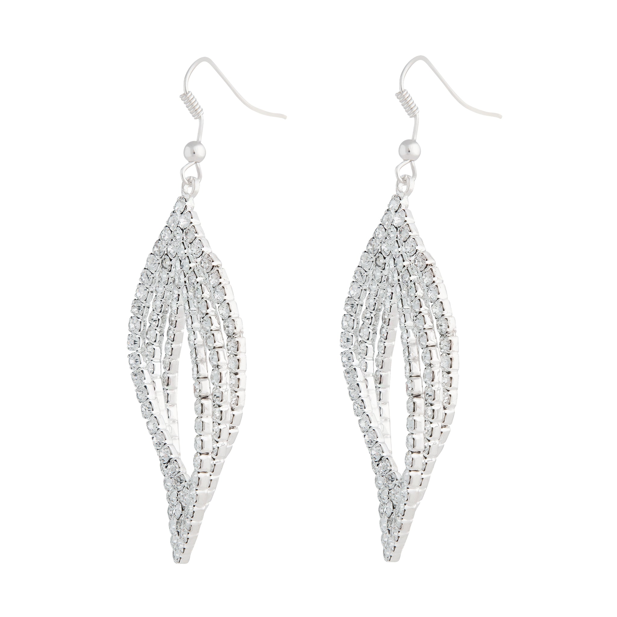 Layered Crystal Navette Twist Drop Earrings