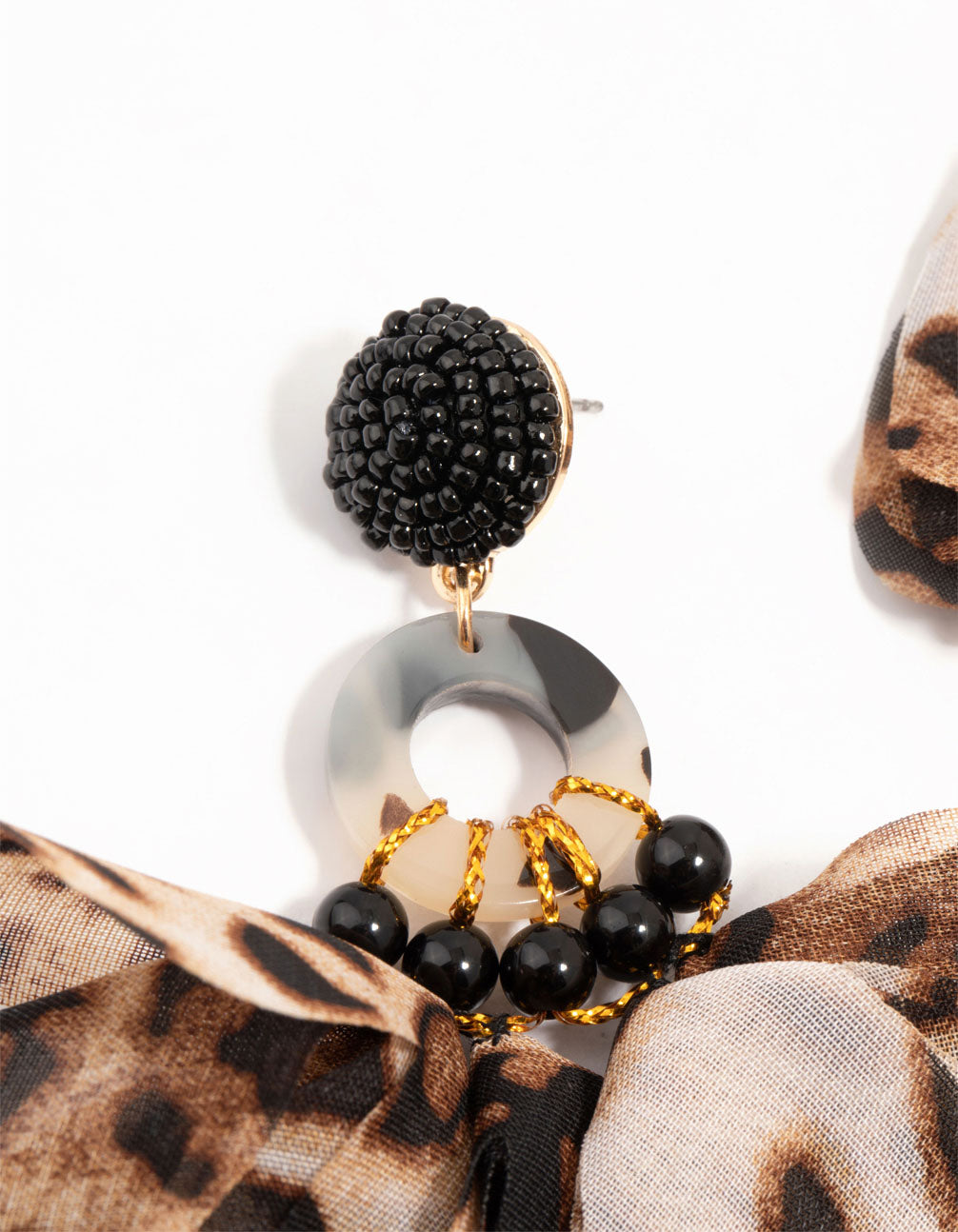 Unleash your wild side with these fabulous drop earrings. Made from a fun leopard print fabric and acrylic blend, they're the perfect accessory to bring some fierce flair to any outfit.
