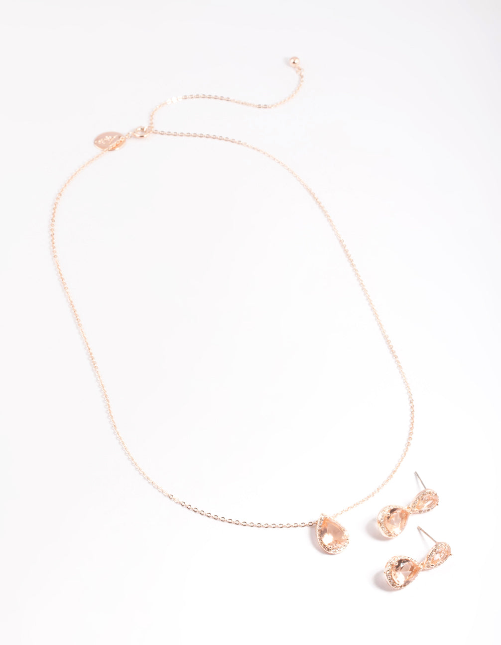 Diamond Simulant Rose Gold Double Teardrop Necklace & Earring Set