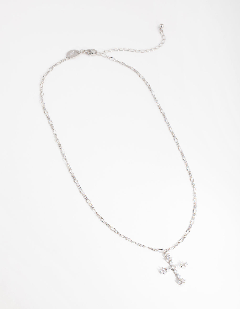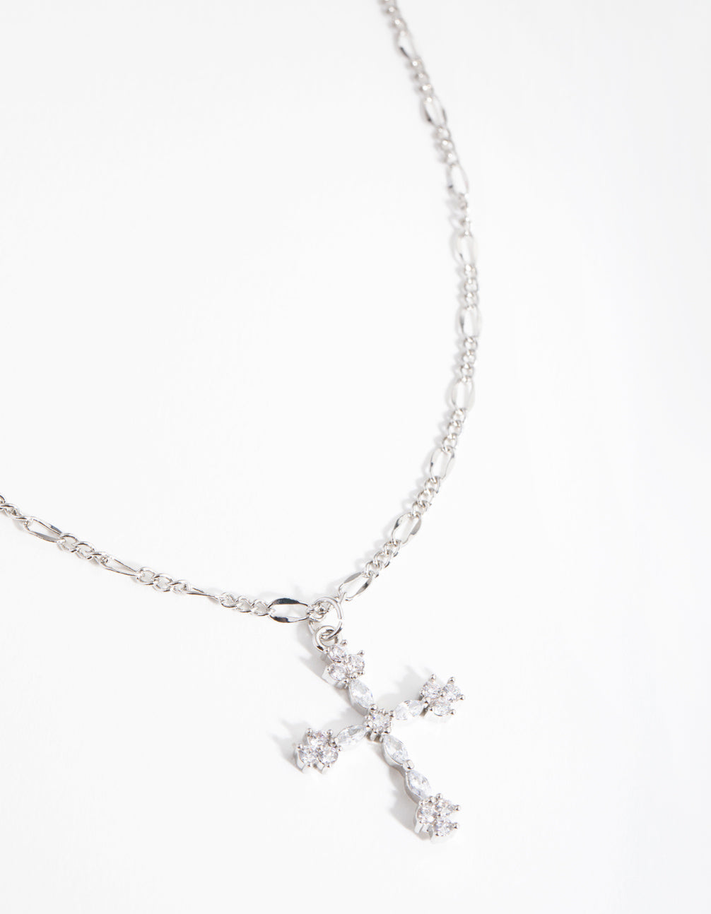 Silver Diamond Simulant Decorated Cross Necklace Silver Diamond Simulant Decorated Cross Necklace Silver Diamond Simulant Decorated Cross Necklace