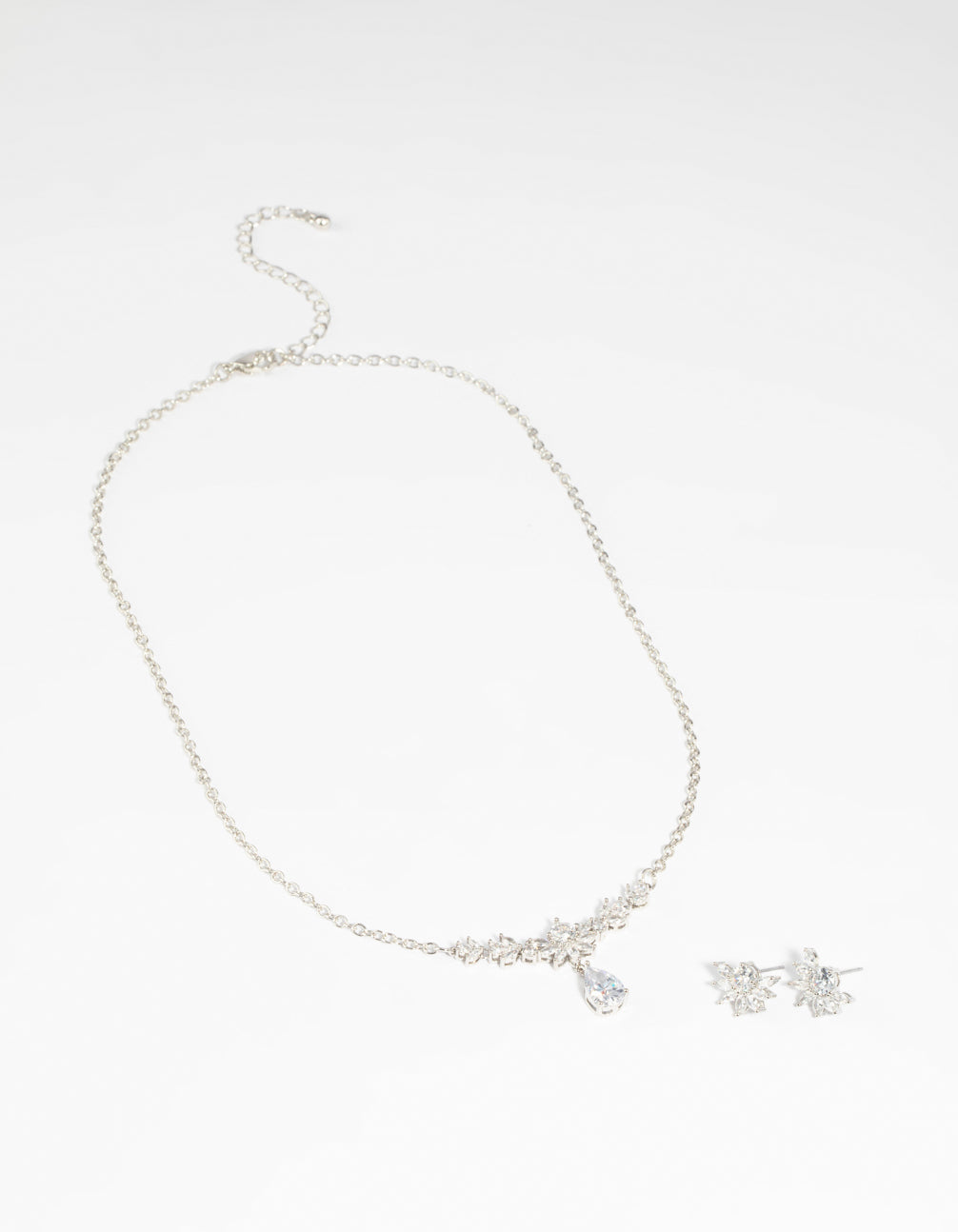 Dazzle with diamond simulants! This necklace and earrings set features diamond simulants, which are crystals that have been engineered to closely resemble the depth, colour and clarity of true diamonds. The design boasts classic 1920s styling. Elegant and timeless, dress it up or down!
