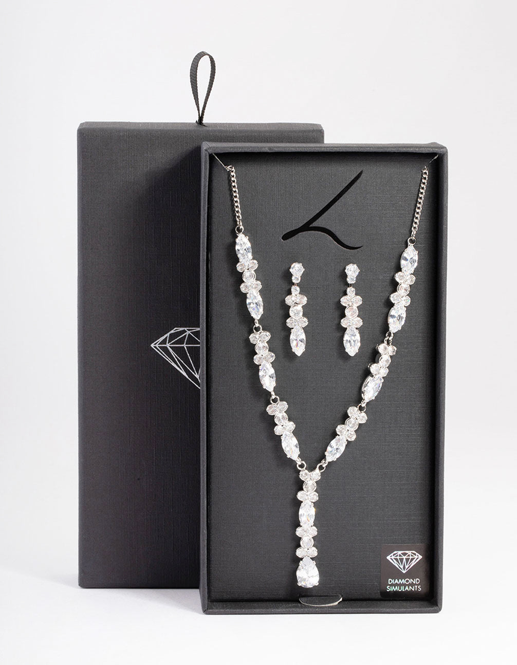Diamond Simulants Silver Statement Drop Earrings & Necklace Set