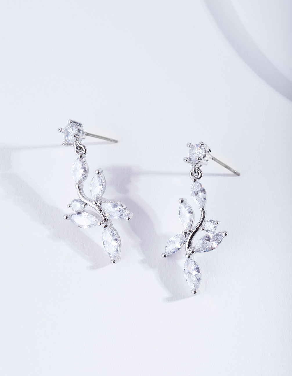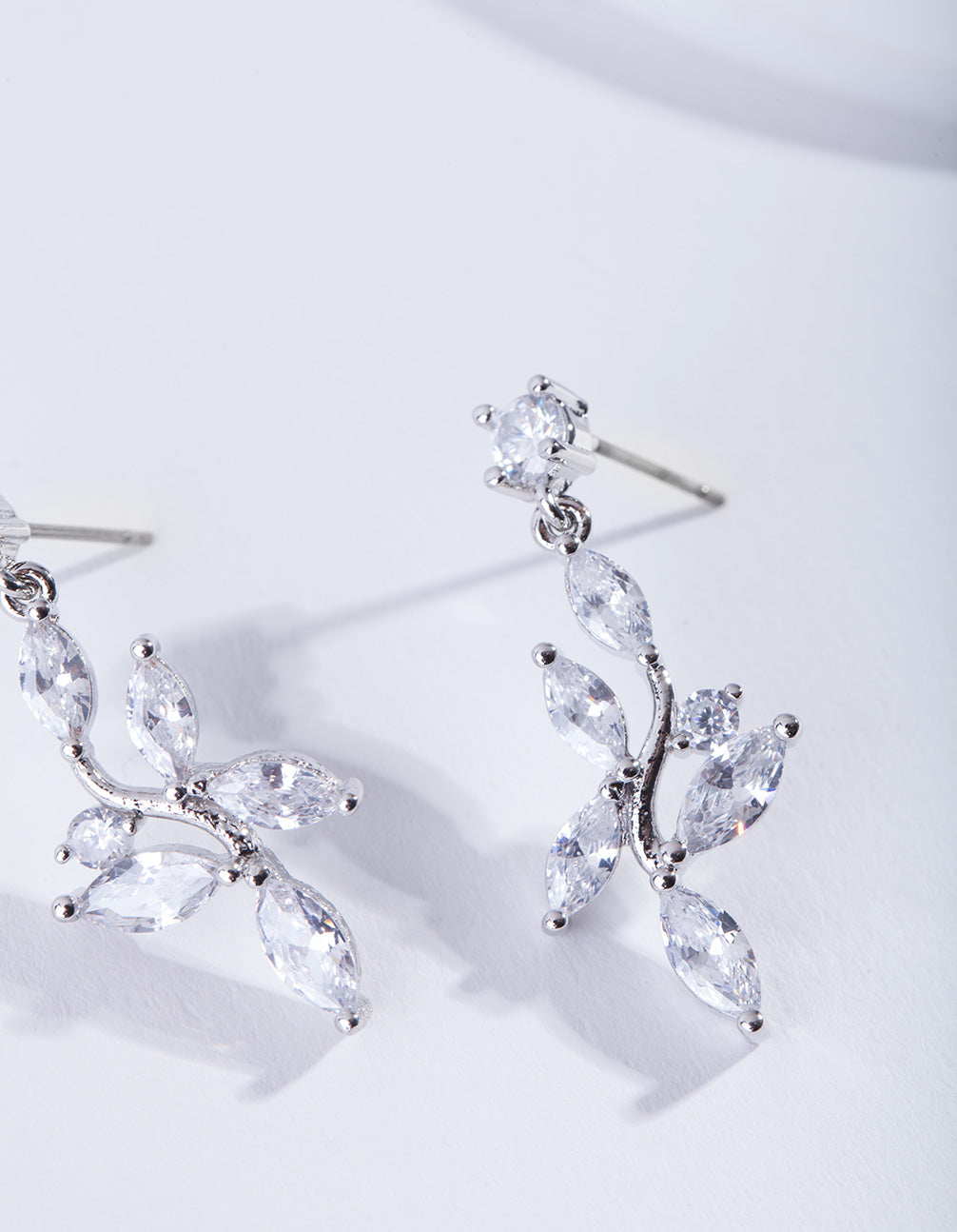 Add some sparkle with Diamond Simulants, cut to emulate the facets and shine of a true diamond. This pair of earrings boast a floral navette design.