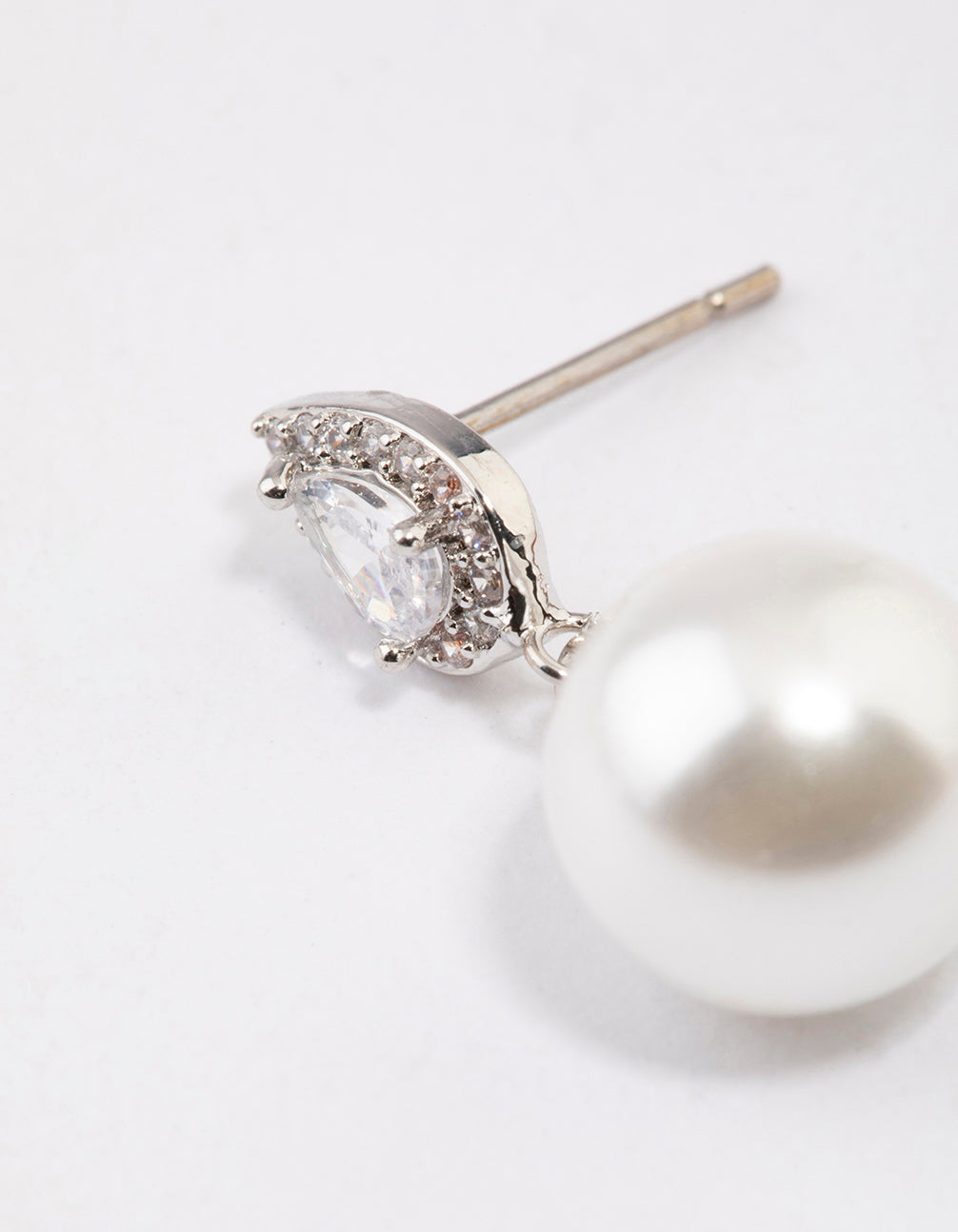 Silver Diamante Pear & Pearl Drop Earrings
