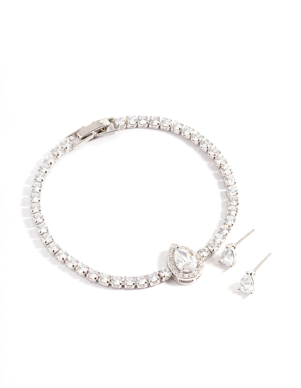 Silver Diamond Simulant Oval Stone & Bracelet Set