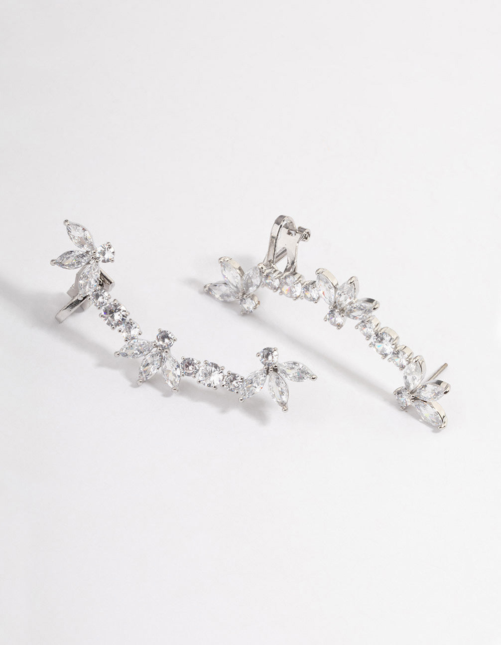 - These silver-toned cuff earrings are perfect for styling around the lobe, featuring a gorgeous, marquise crystal design for added sparkle!