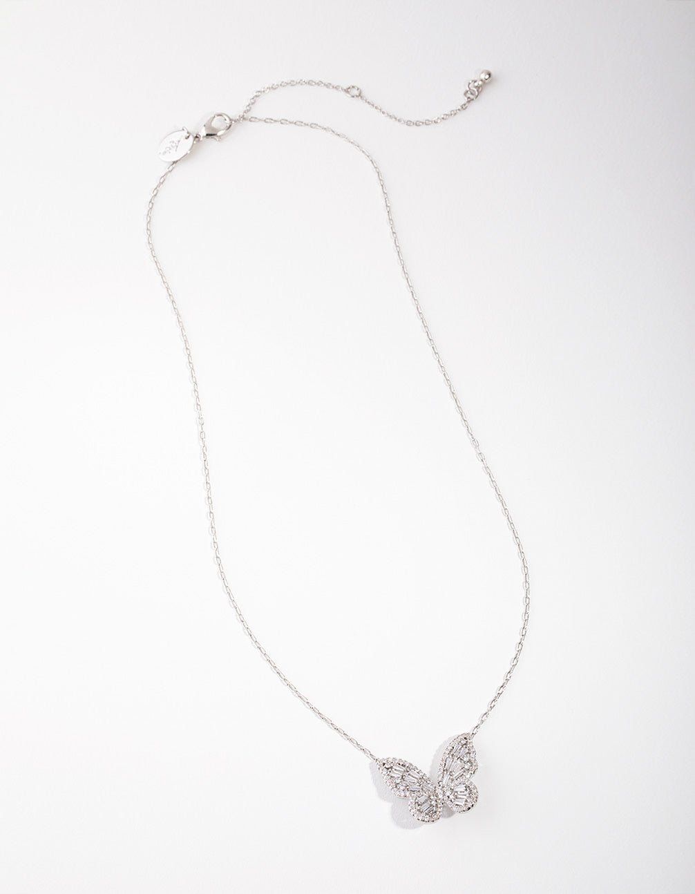 Sillver Diamond Simulant Large Butterfly Necklace