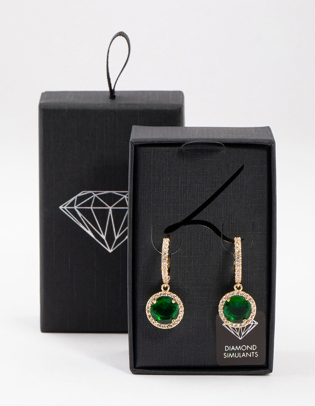 • These gorgeous huggie hoop earrings feature a gold-toned, diamante encrusted setting and a gorgeous emerald crystal in the centre.
