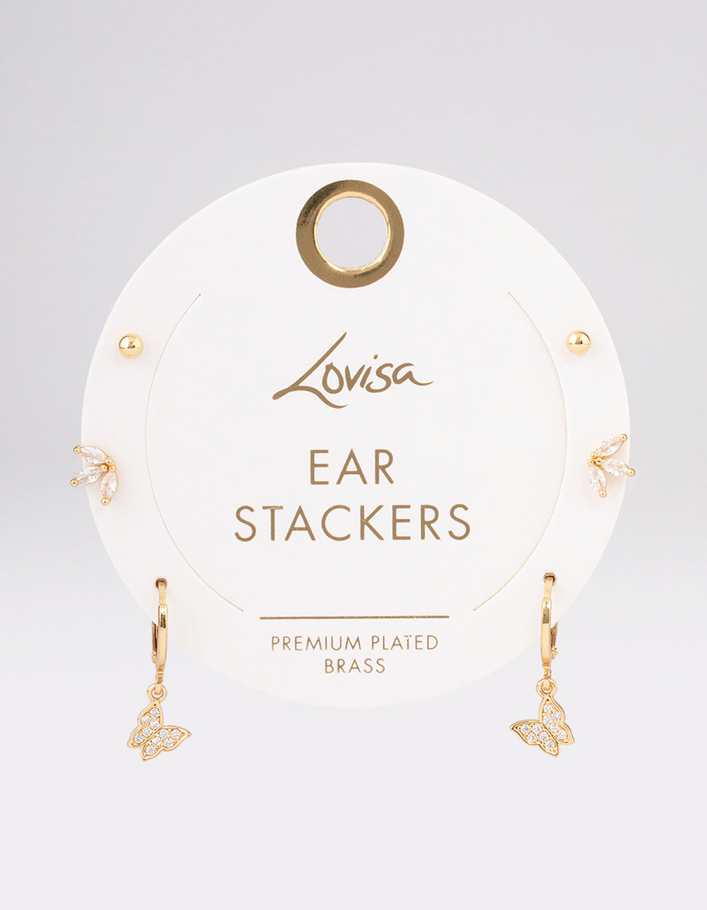 Treat yourself to luxury with jewellery from the Lovisa Luxe Collection! These gold-plated brass huggie earrings feature delicate butterfly charms, each with sparkling cubic zirconia stones, adding a whimsical touch to your look.