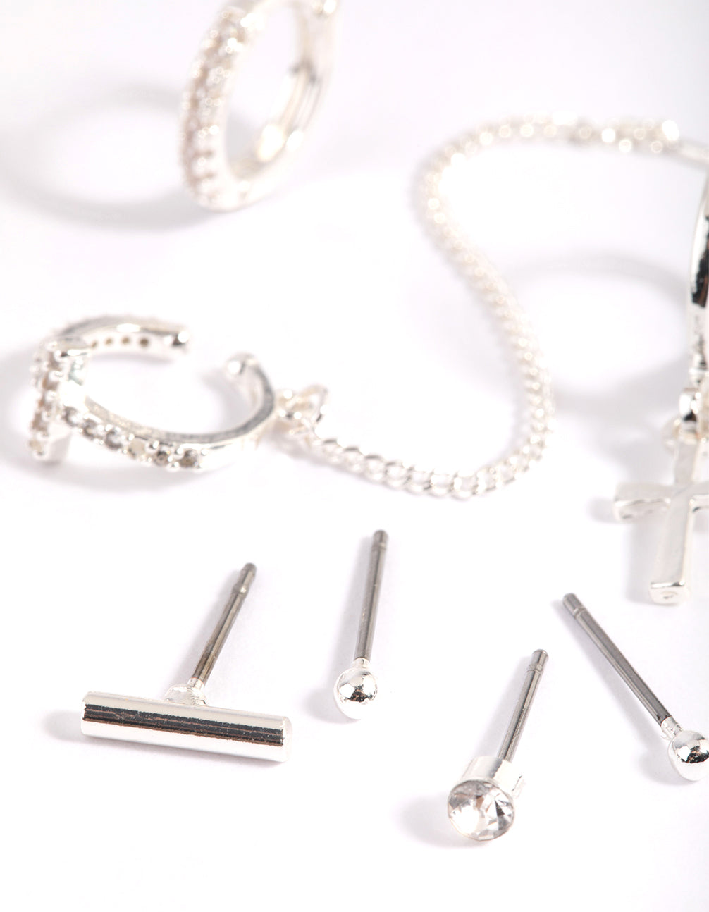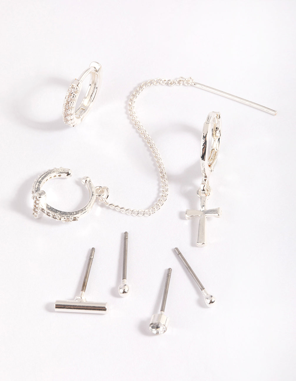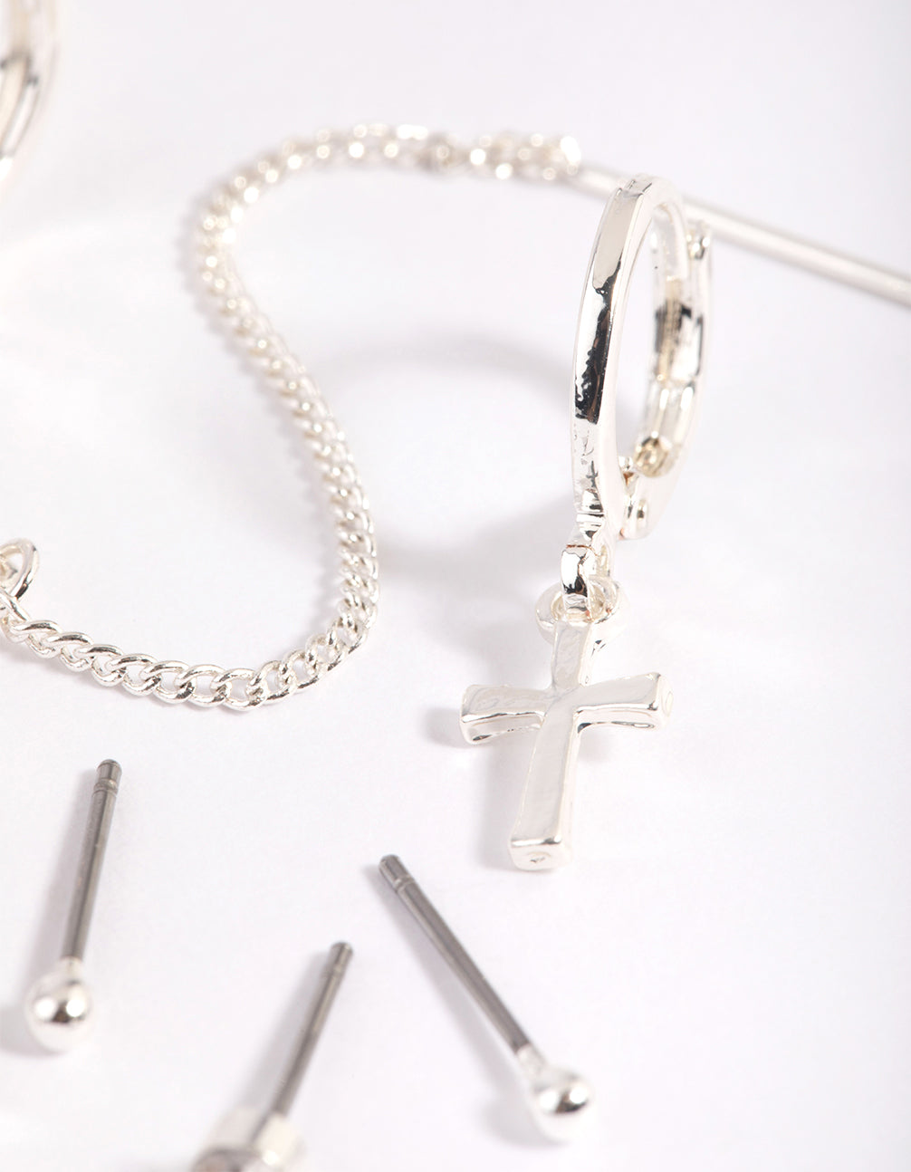 Silver Plated Brass Chain Cross Earring Stack 8-Pack