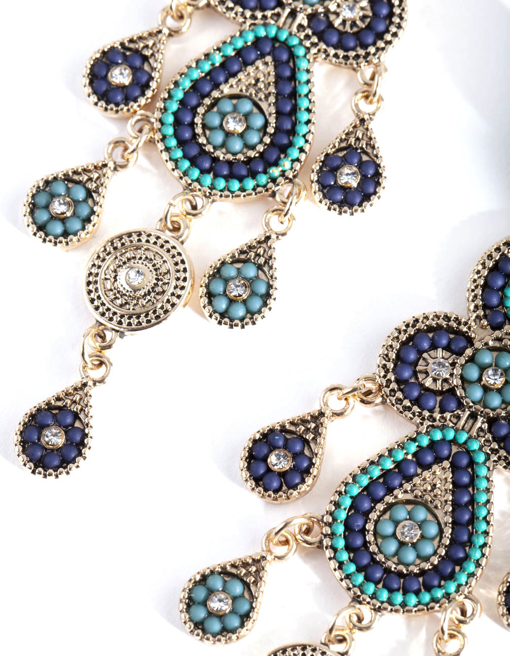 Shine bright with our statement earring range! These gold-toned drop earrings boast a stunning green bead set bohemian inspired design, perfect for adding that extra pop of colour your daily edits.